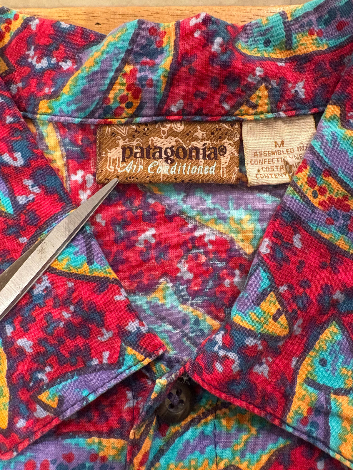 数あるオールドPATAGONIAシリーズでも名品と称されるアイテムが多く残る90s初期の希少モデル、うっすらと確認できる紙タグS3表記,93年製造の廃盤A/Cシャツ。