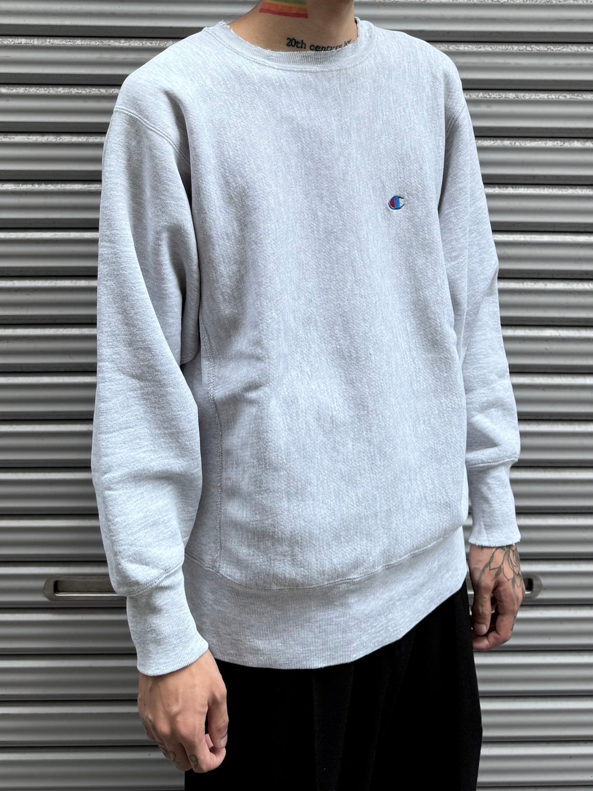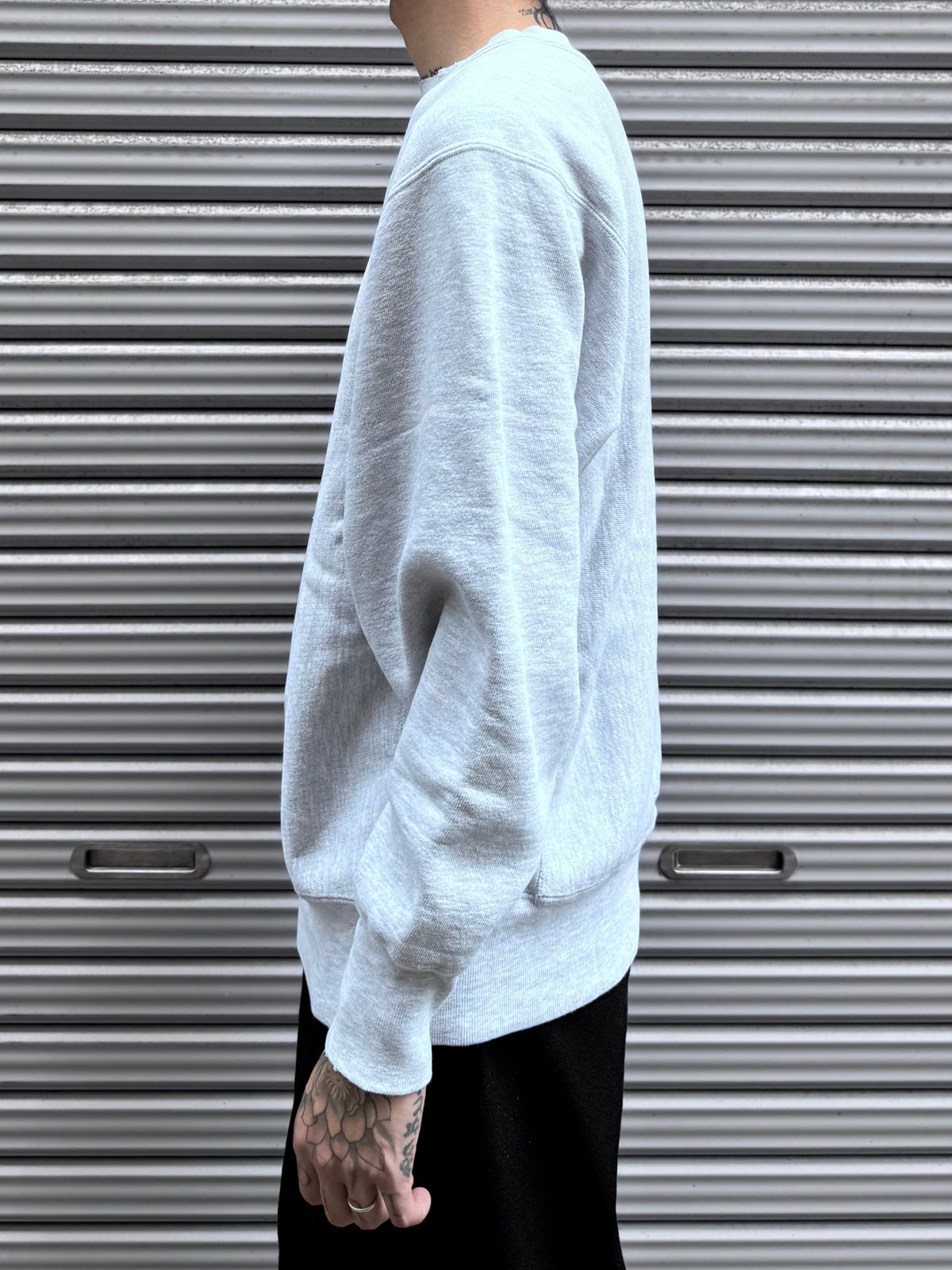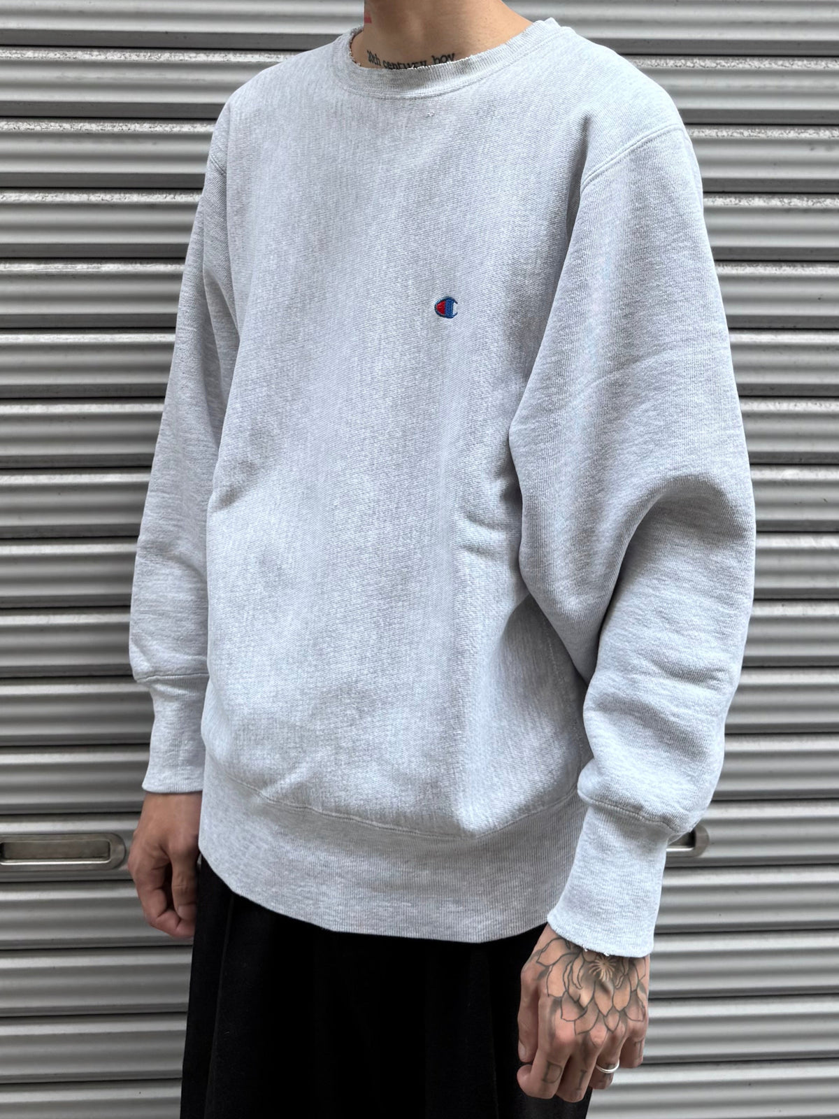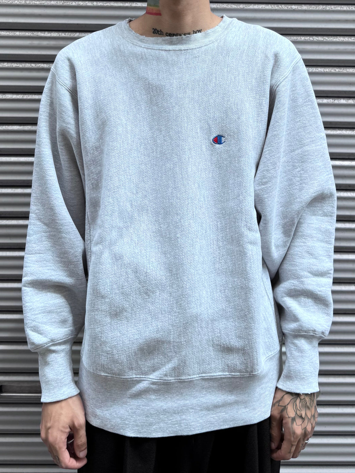 Championのライトグレー・クルーネックスウェットシャツです。