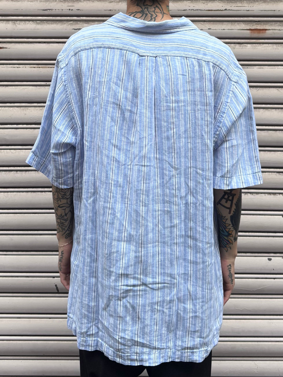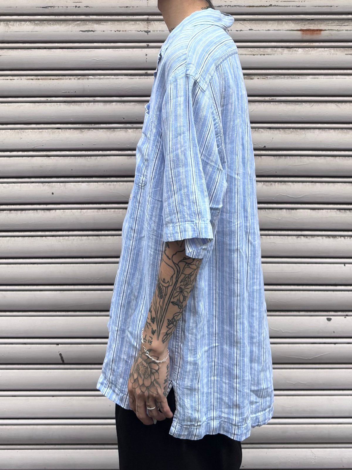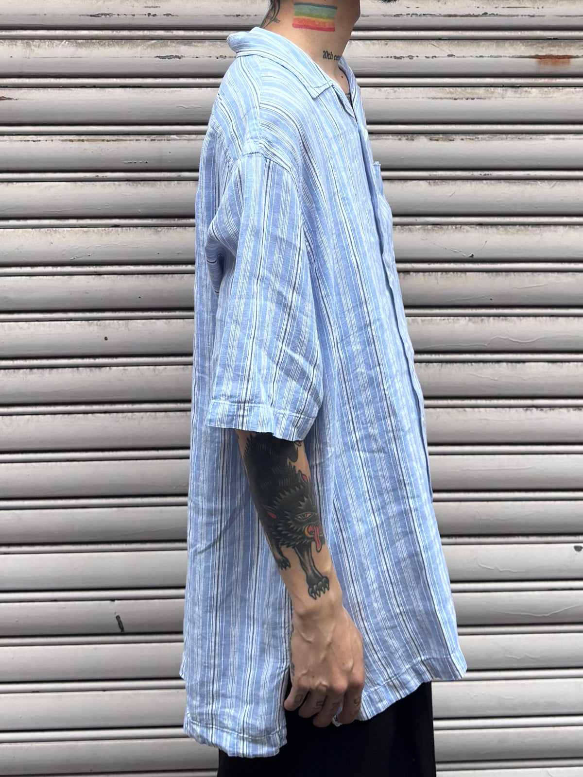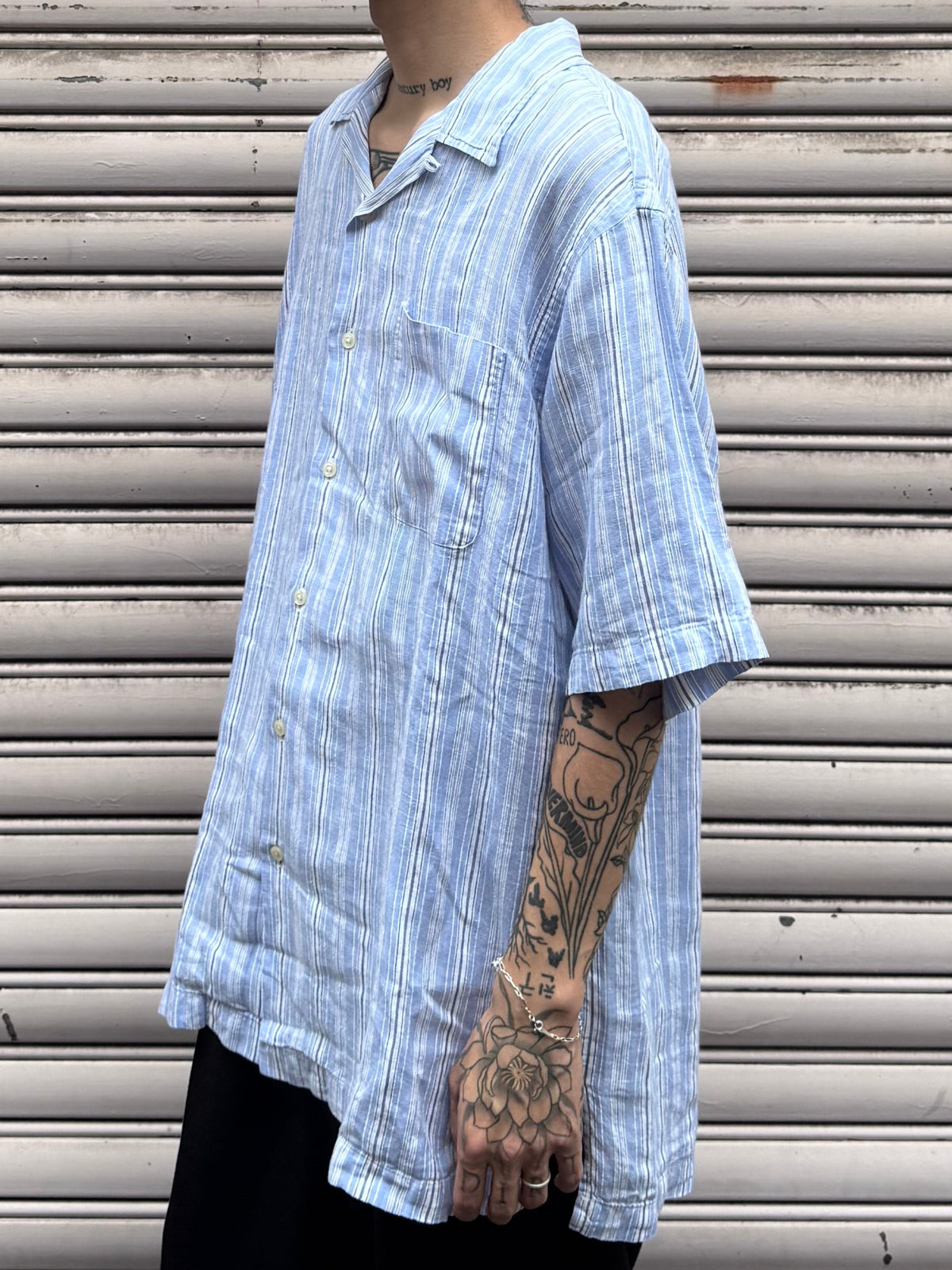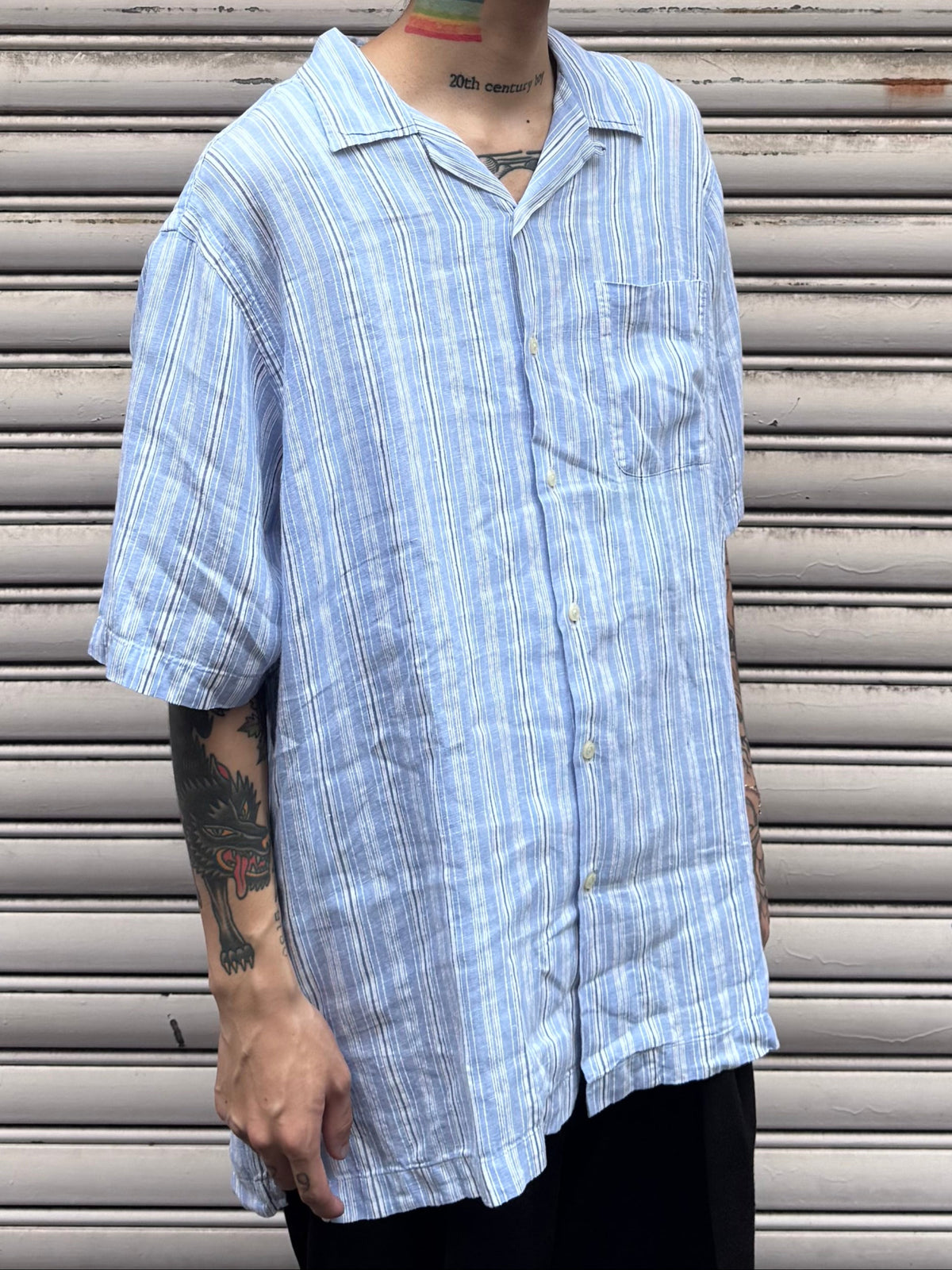 Ralph Lauren(ラルフローレン)の爽やかなブルーとホワイトのストライプ柄が魅力の100%リネン開襟シャツ。
