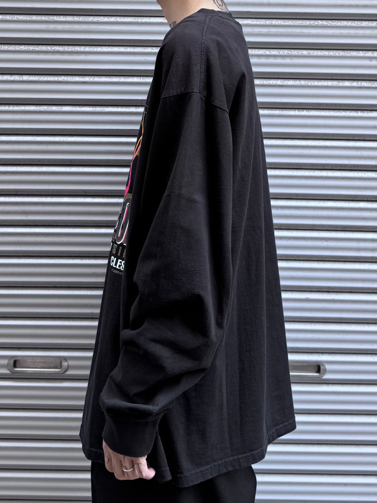 シンプルなシルエットに映えるグラフィックは、デニムやレザージャケットとの相性も抜群。
