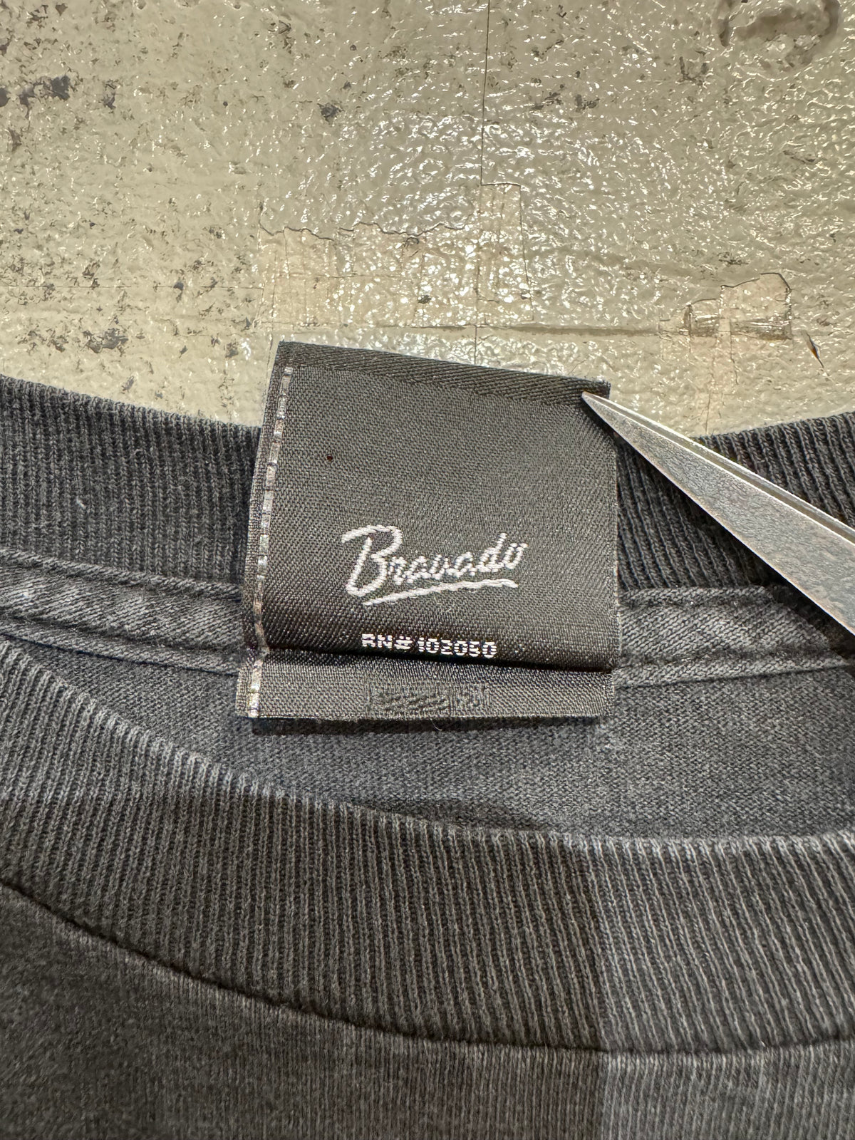 背面には、カウボーイハットを被りバンダナで顔を覆ったスカルのグラフィックが大胆にプリント。