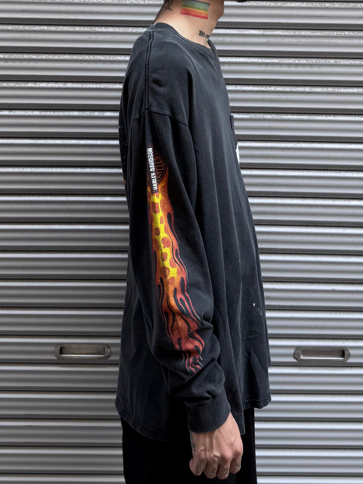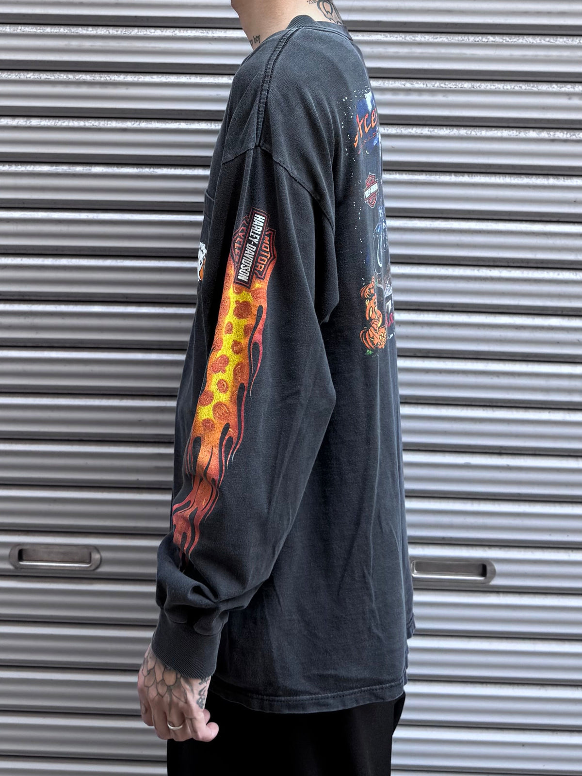 袖には炎のグラフィックとカボチャがミックス。