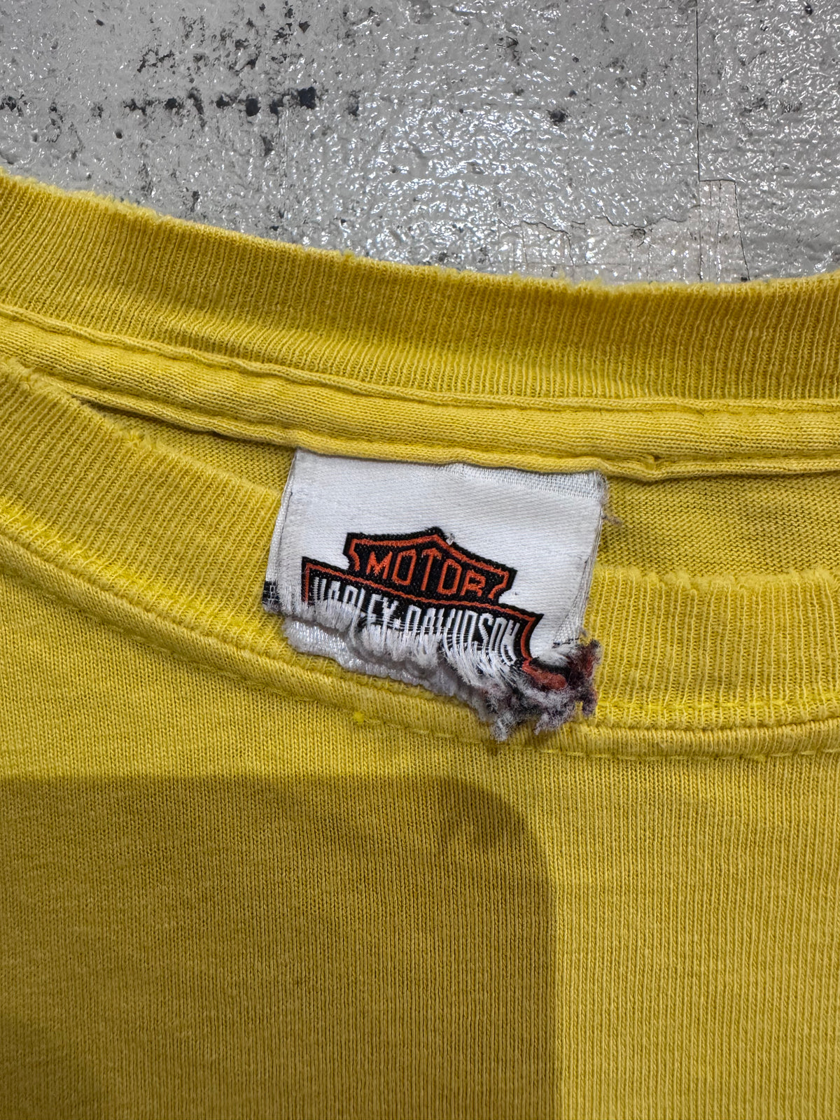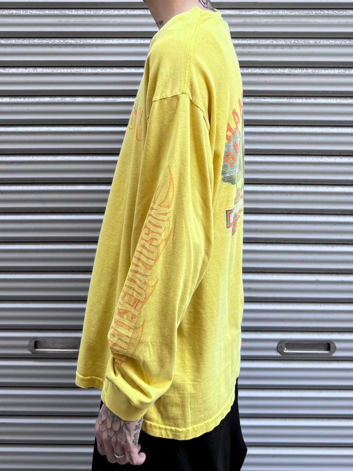 鮮やかなイエローのボディに、ブランドを象徴するイーグルのグラフィックとHARLEY-DAVIDSONロゴがデザイン。
