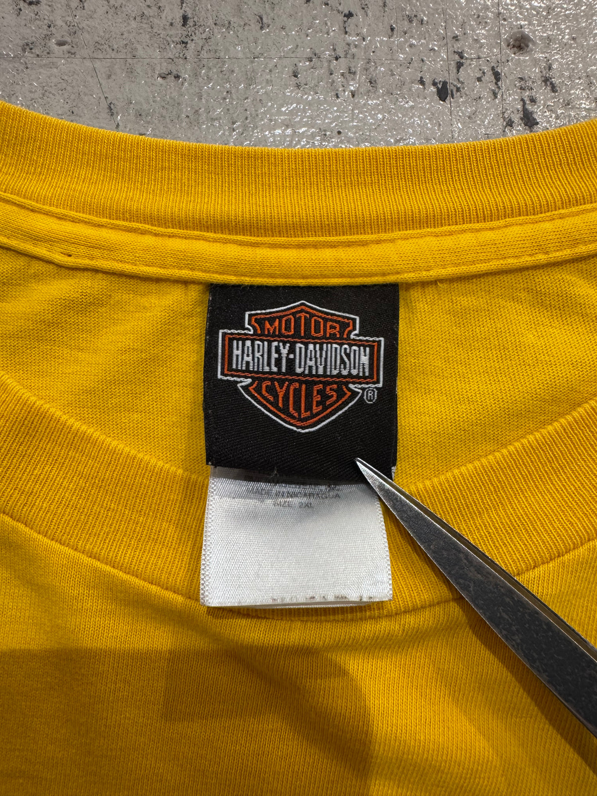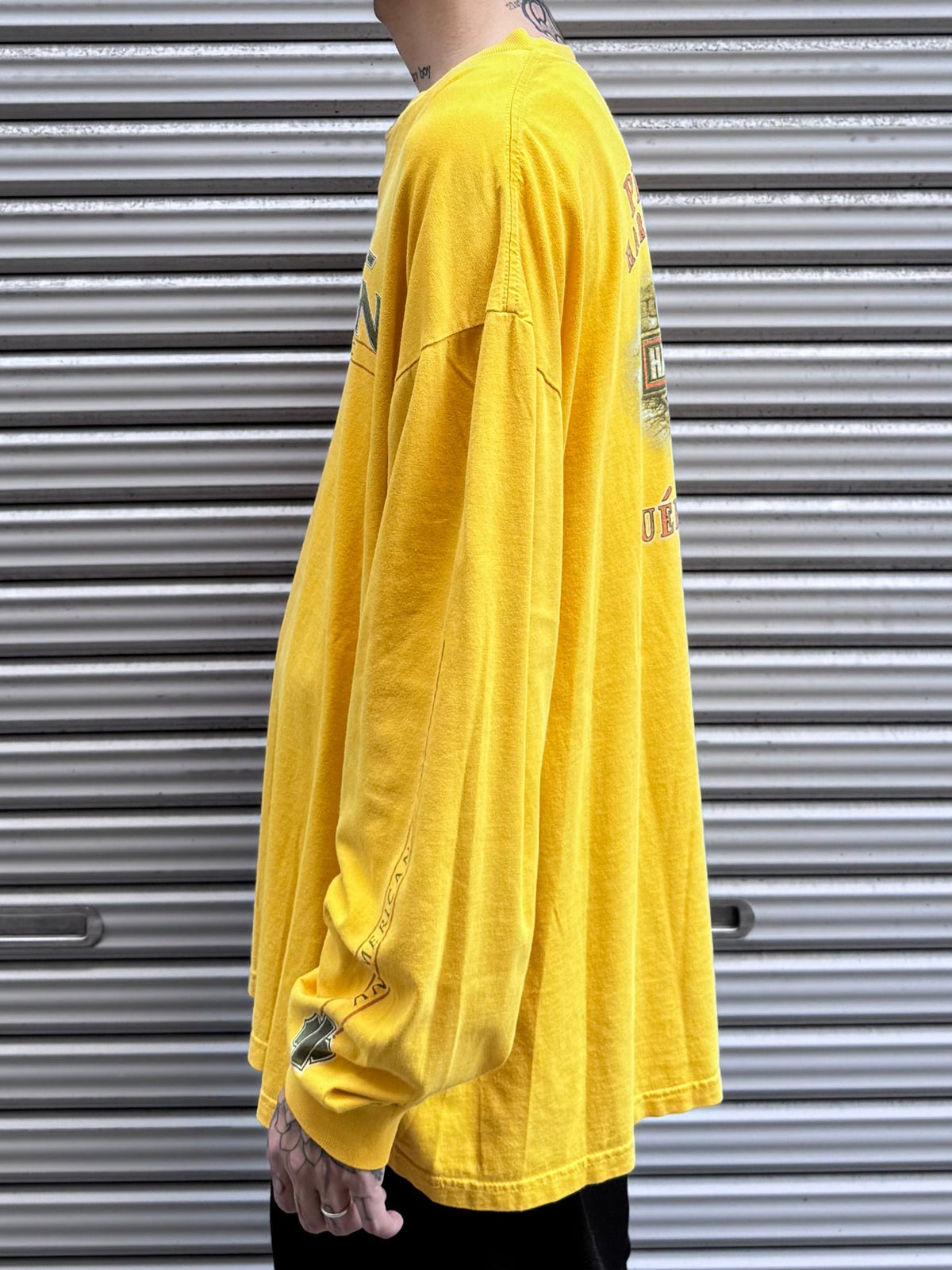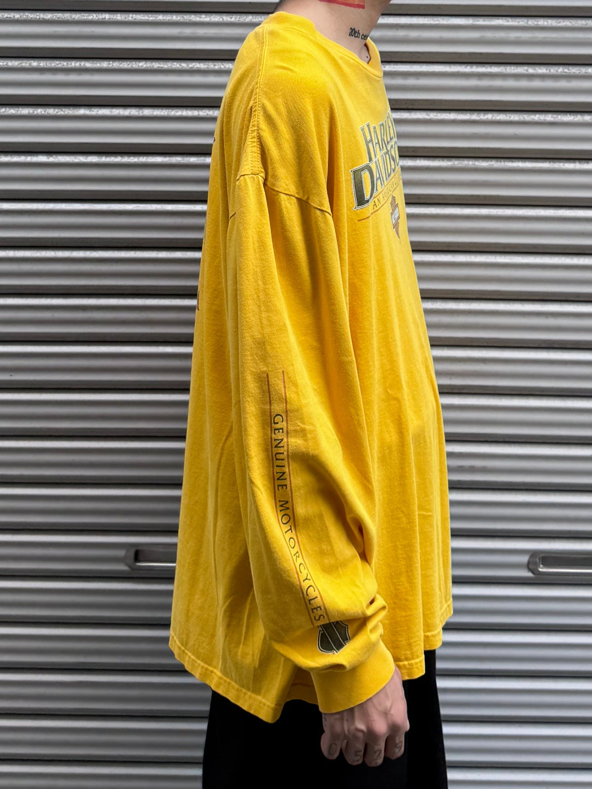 鮮やかなイエローボディが目を引く、ハーレーダビッドソンのロングスリーブTシャツ。