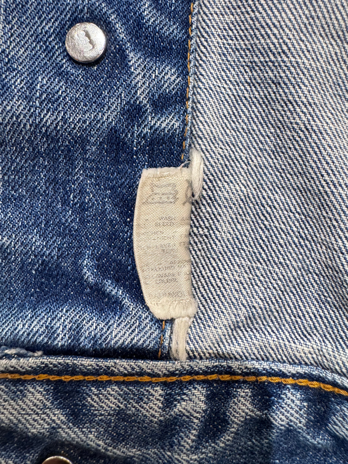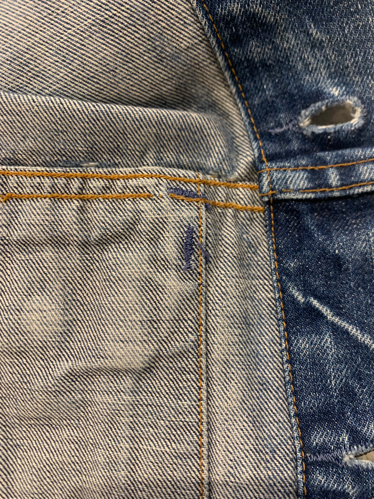 ボタン裏350、クロカン、やや縦長な胸ポケット、色落ちの風合いなど古き良きリーバイスのディテールが楽しめる一着。