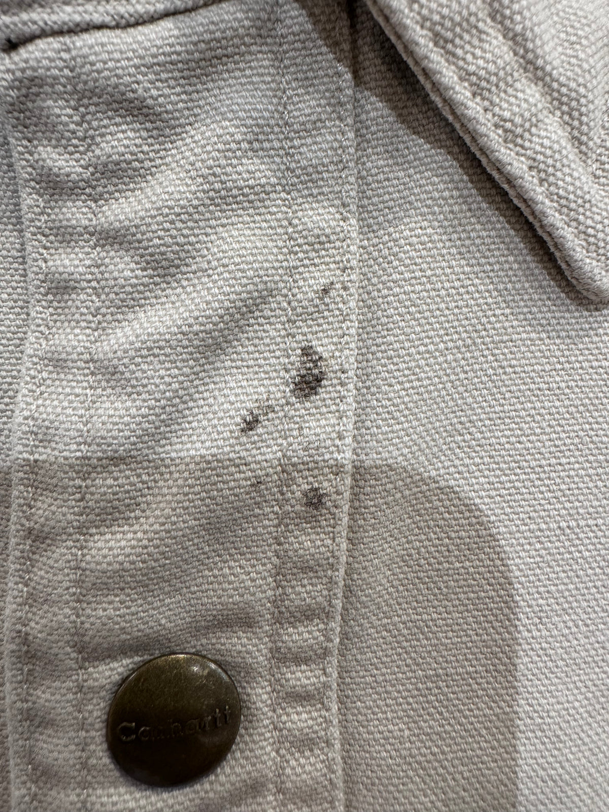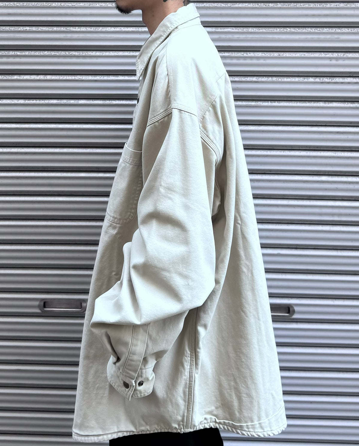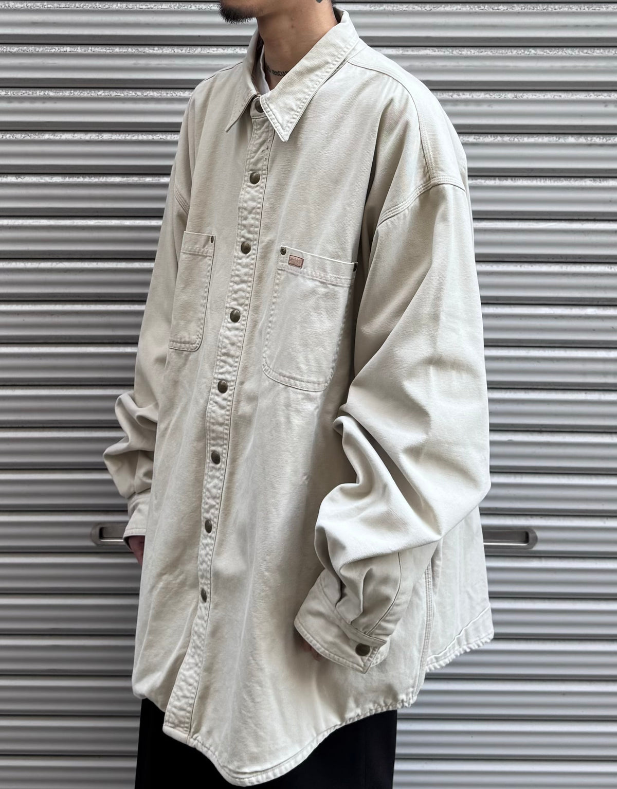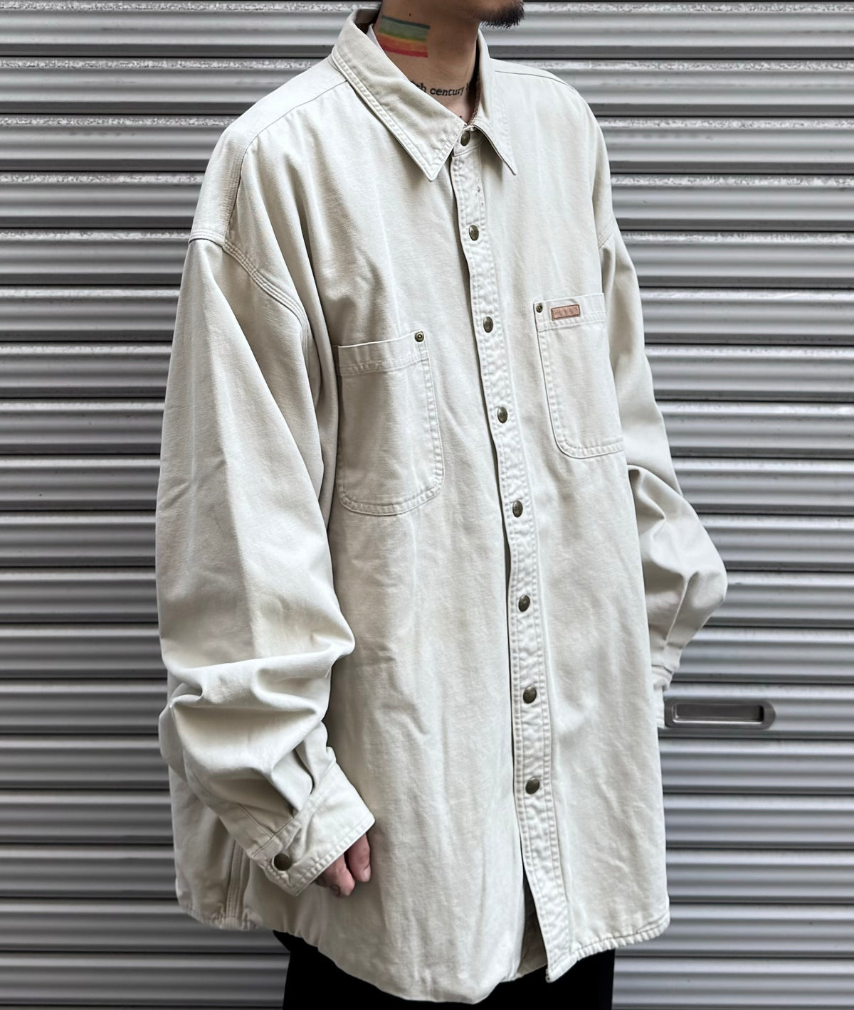 カーハートらしいタフなダック地を使用したアイボリーカラーのシャツ。