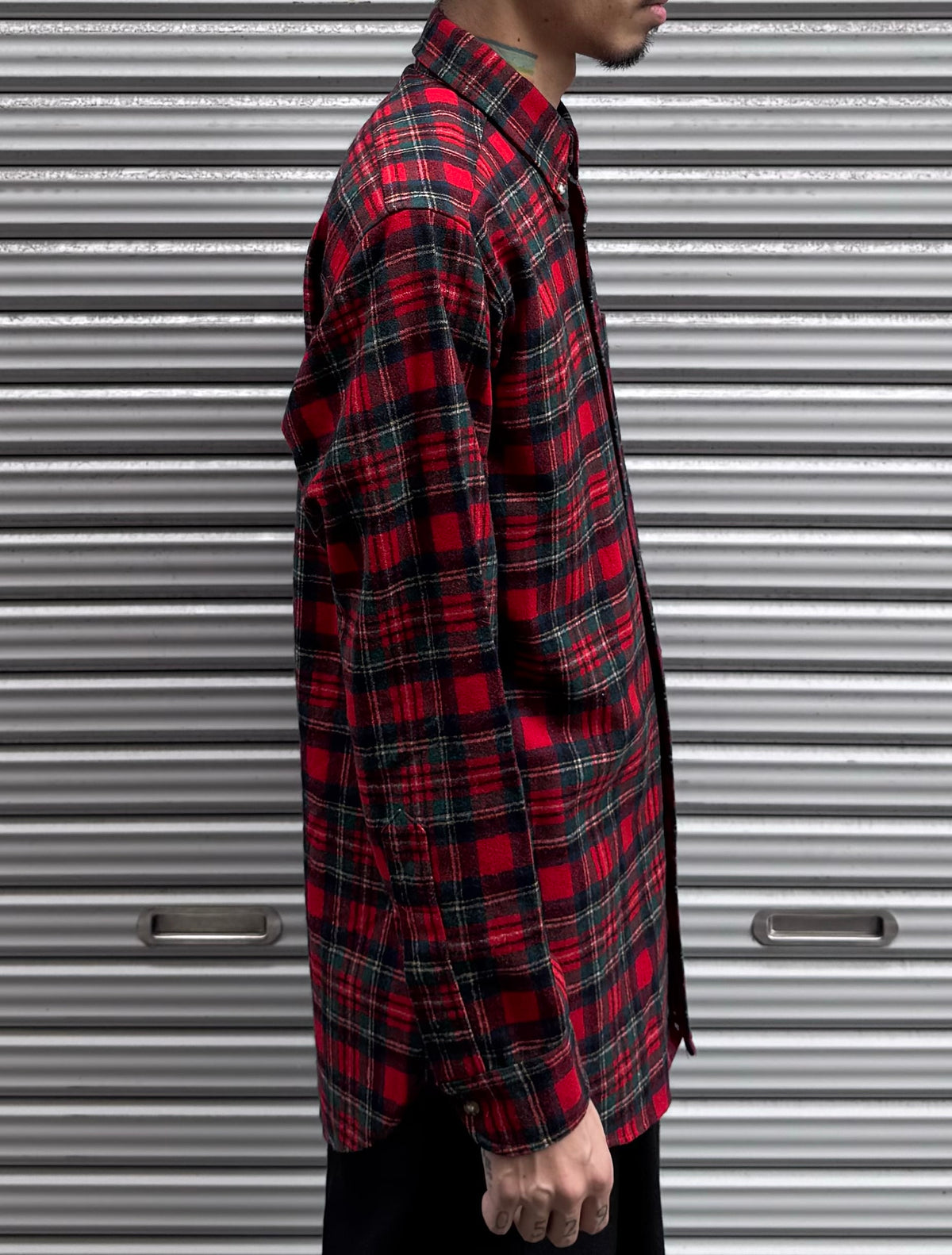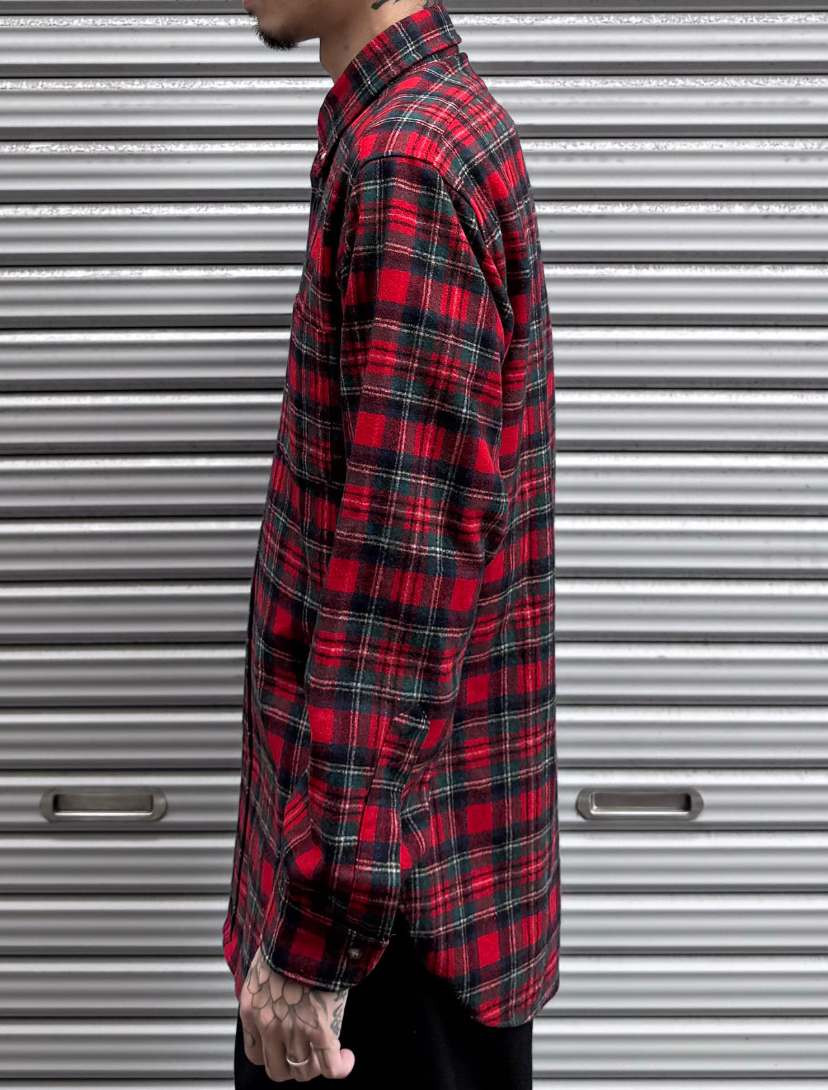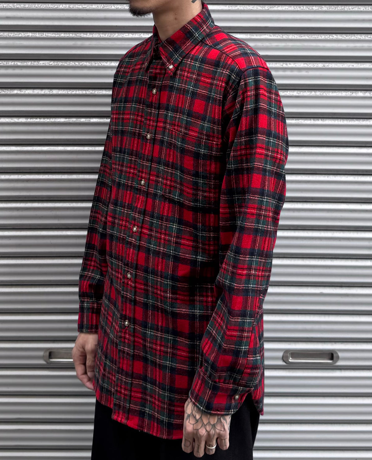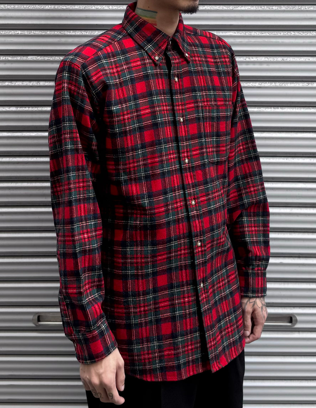 深みのある赤とダークグリーンを基調としたチェック柄は、当時ならではのクラシックな配色で、落ち着きと渋さを兼ね備えています。