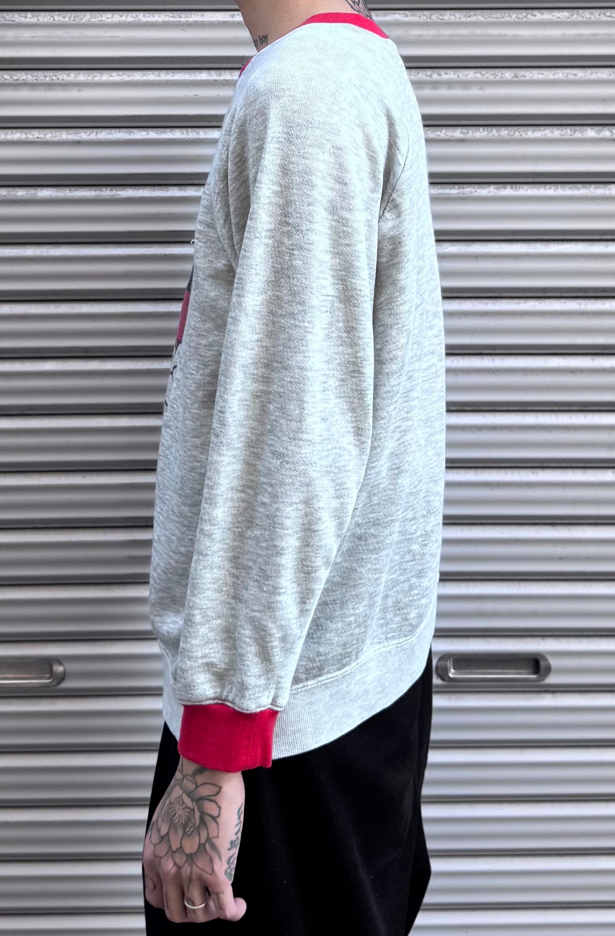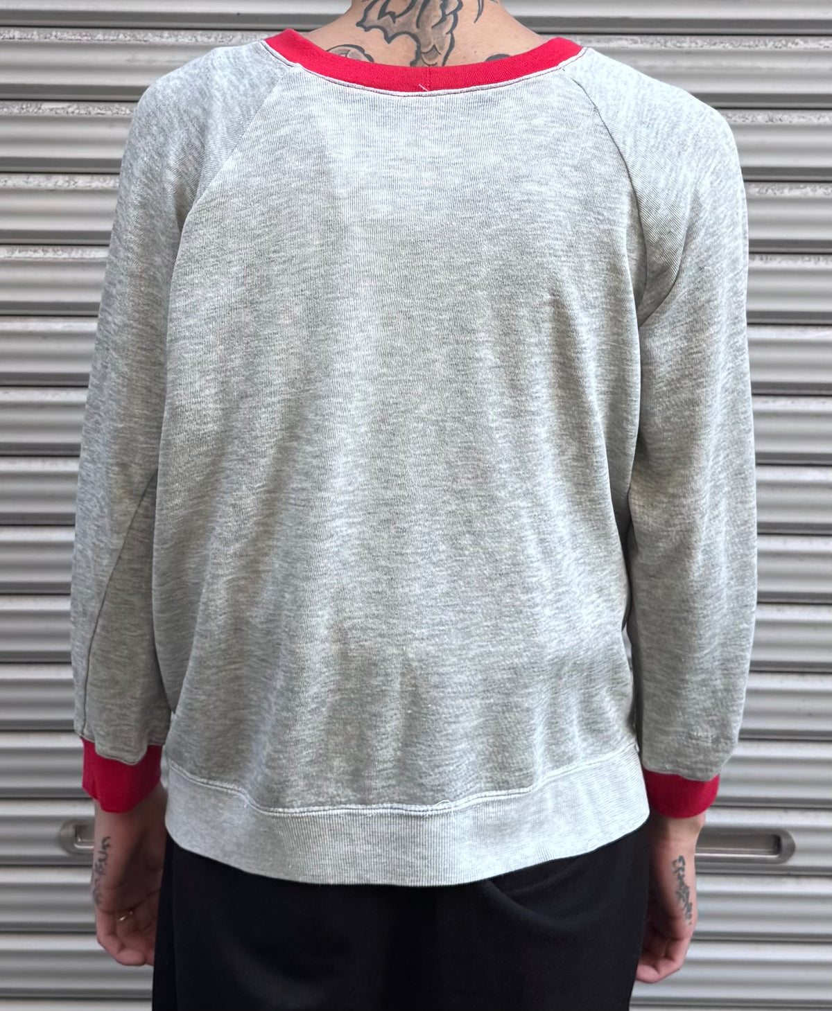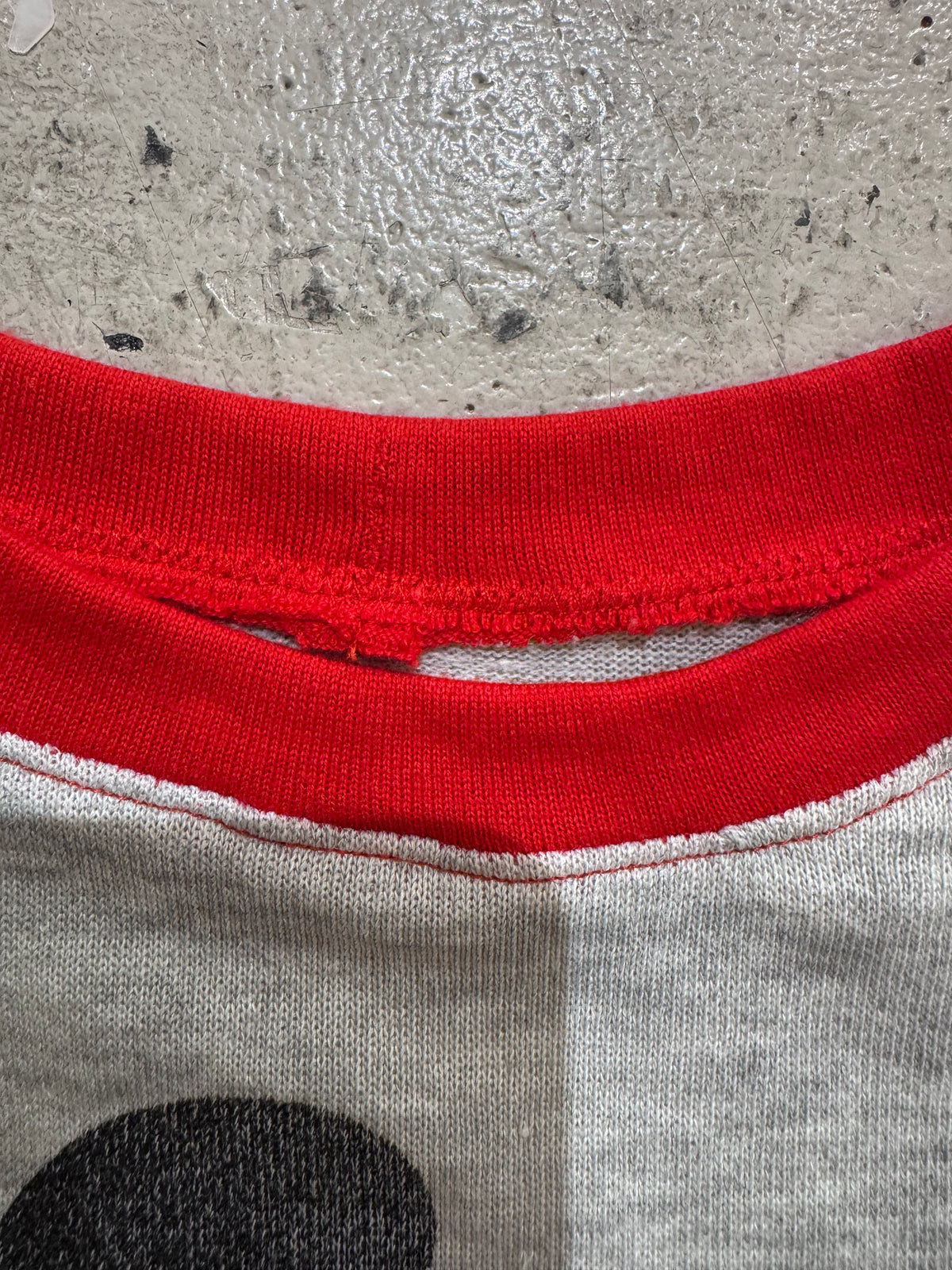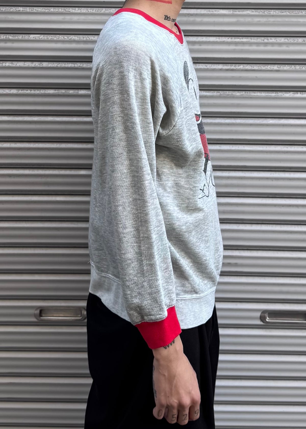 グレーボディに赤いリブが映える、ポップで遊び心あふれるミッキーマウスの一着。