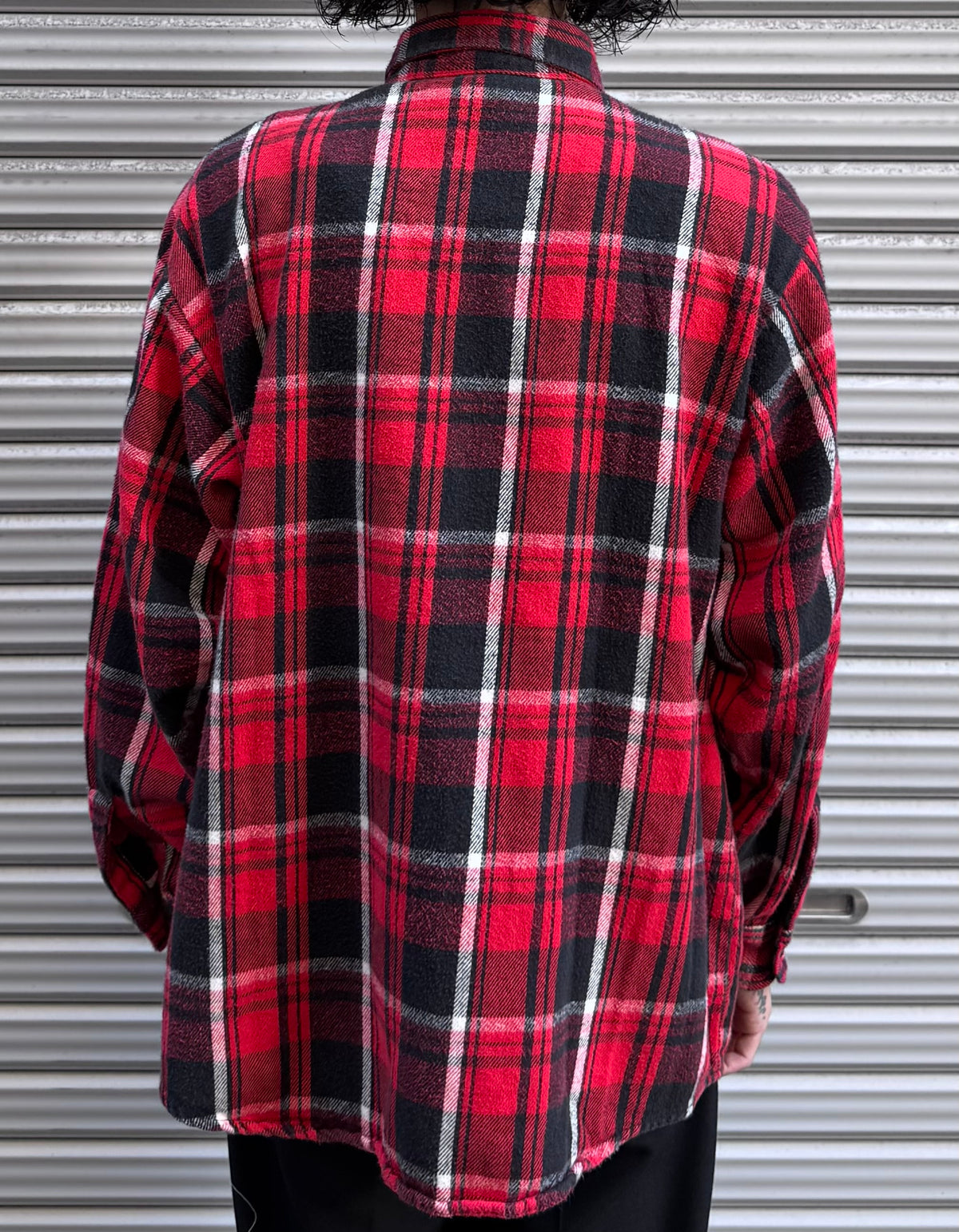 クラシックな赤×ブラックのチェック柄で、無骨ながらも温かみのある一着です。