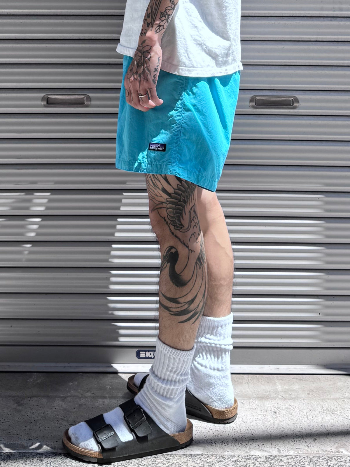鮮やかな水色のカラーリングとワイドすぎない絶妙なシルエットが、今のストリートスタイルとも好相性。