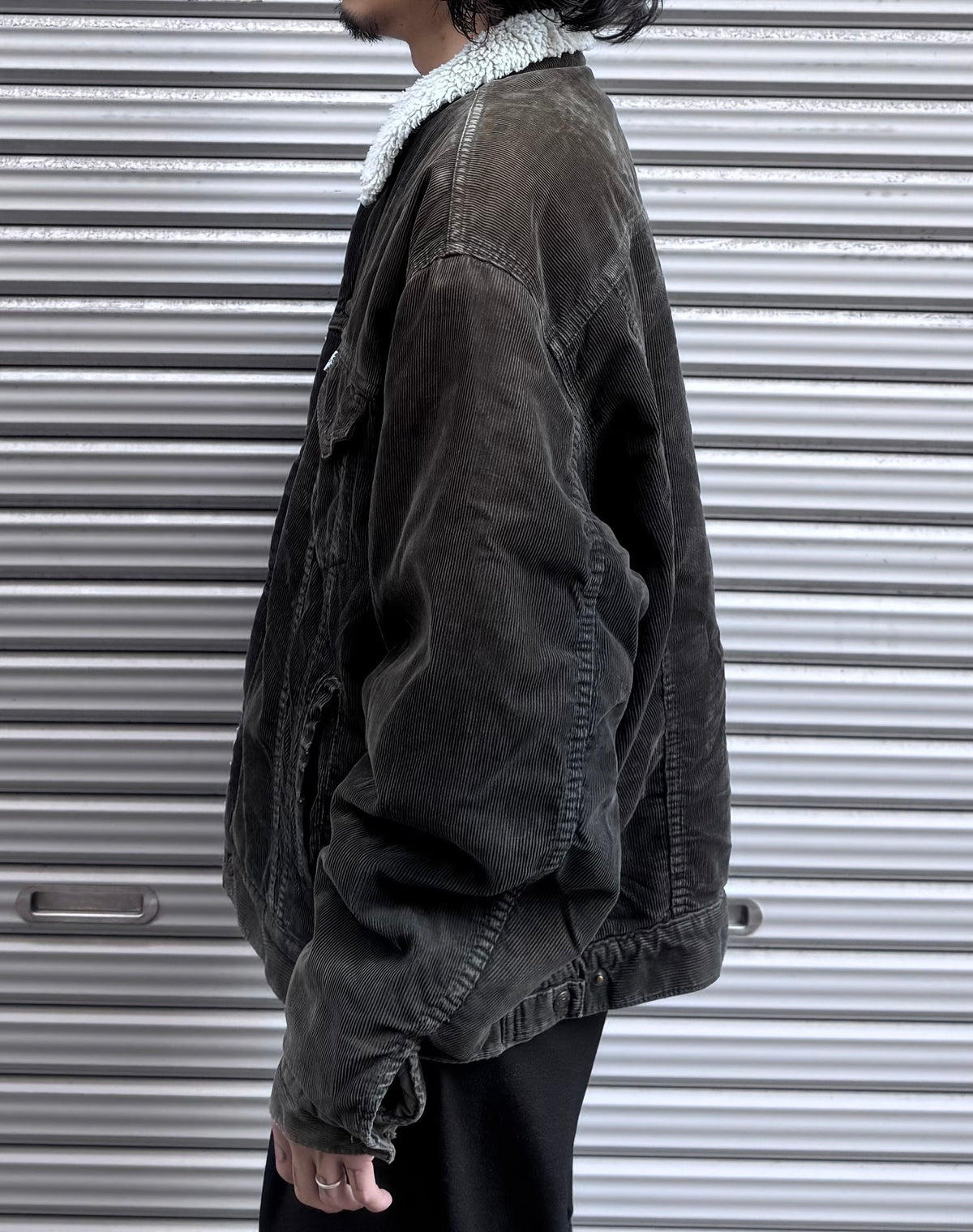 コーデュロイ素材のストラクチャーに加え、季節に嬉しいシェルパ(ボア)裏地の仕様。