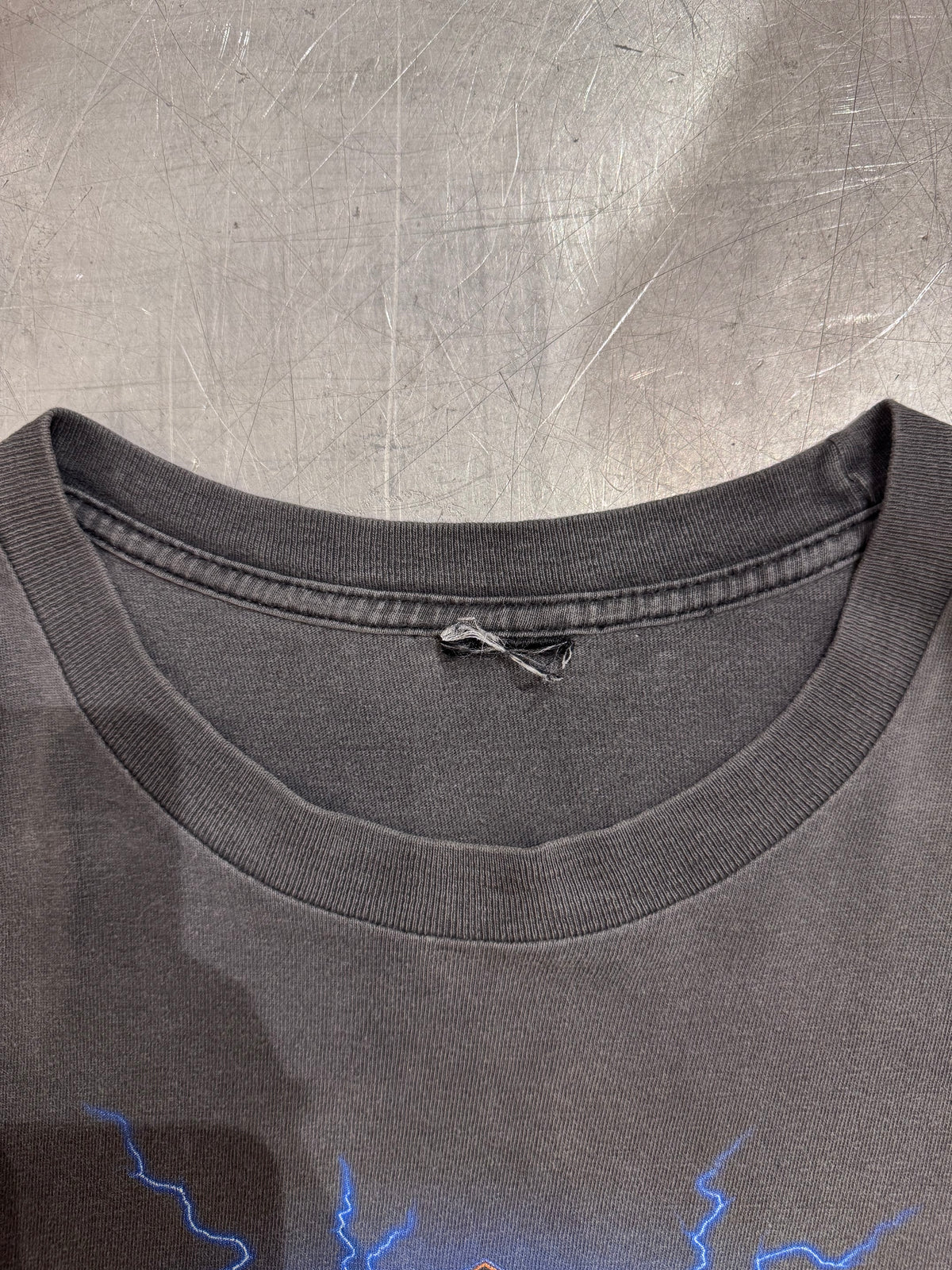 フェードがかったグレーのボディにハーレーダビッドソンの象徴的なロゴ、Ber&Shieldの周りに稲妻が走るサンダーイラストをデザイン。