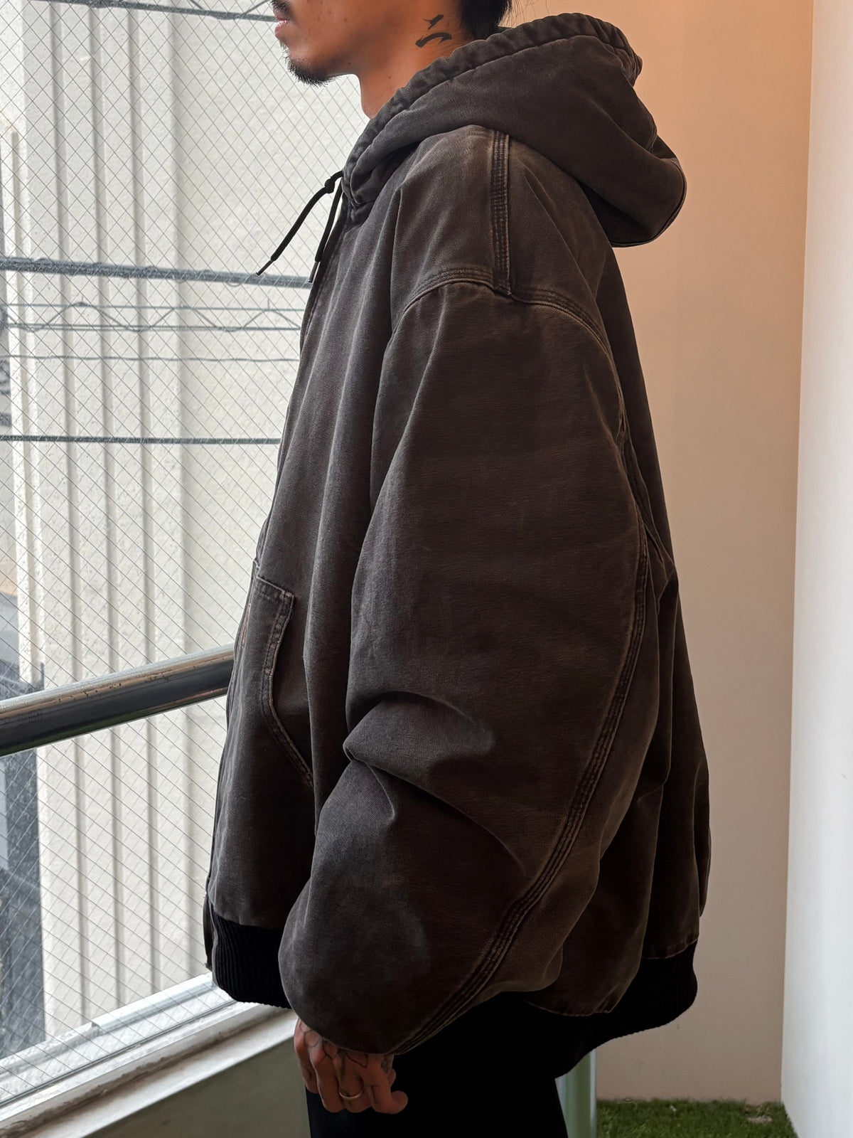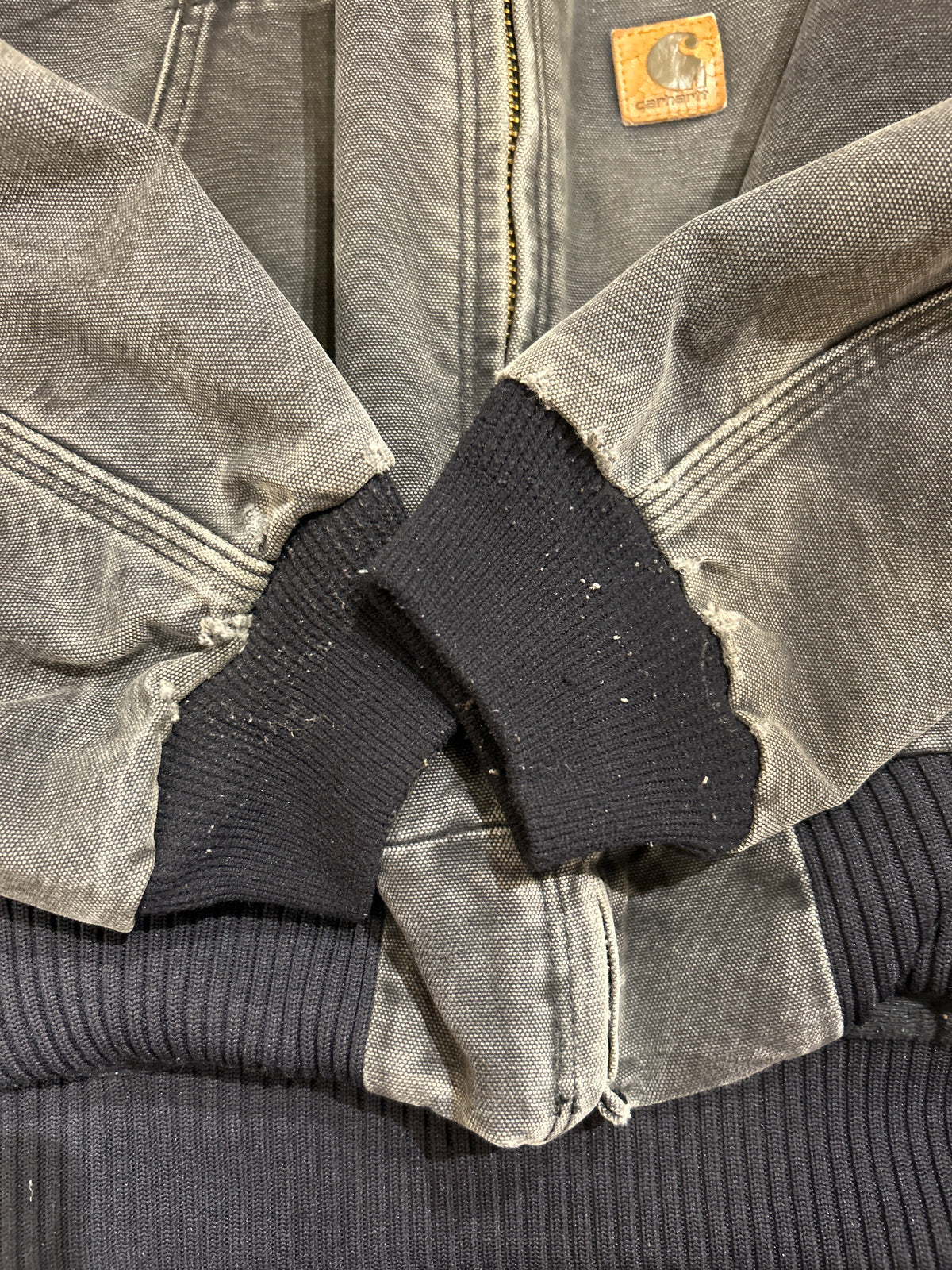 色あせたチャコールグレーで、使い込まれた風合いが古着らしさを醸し出しており、ストリート、アメカジ、ワークスタイルなど、幅広いジャンルにマッチします。