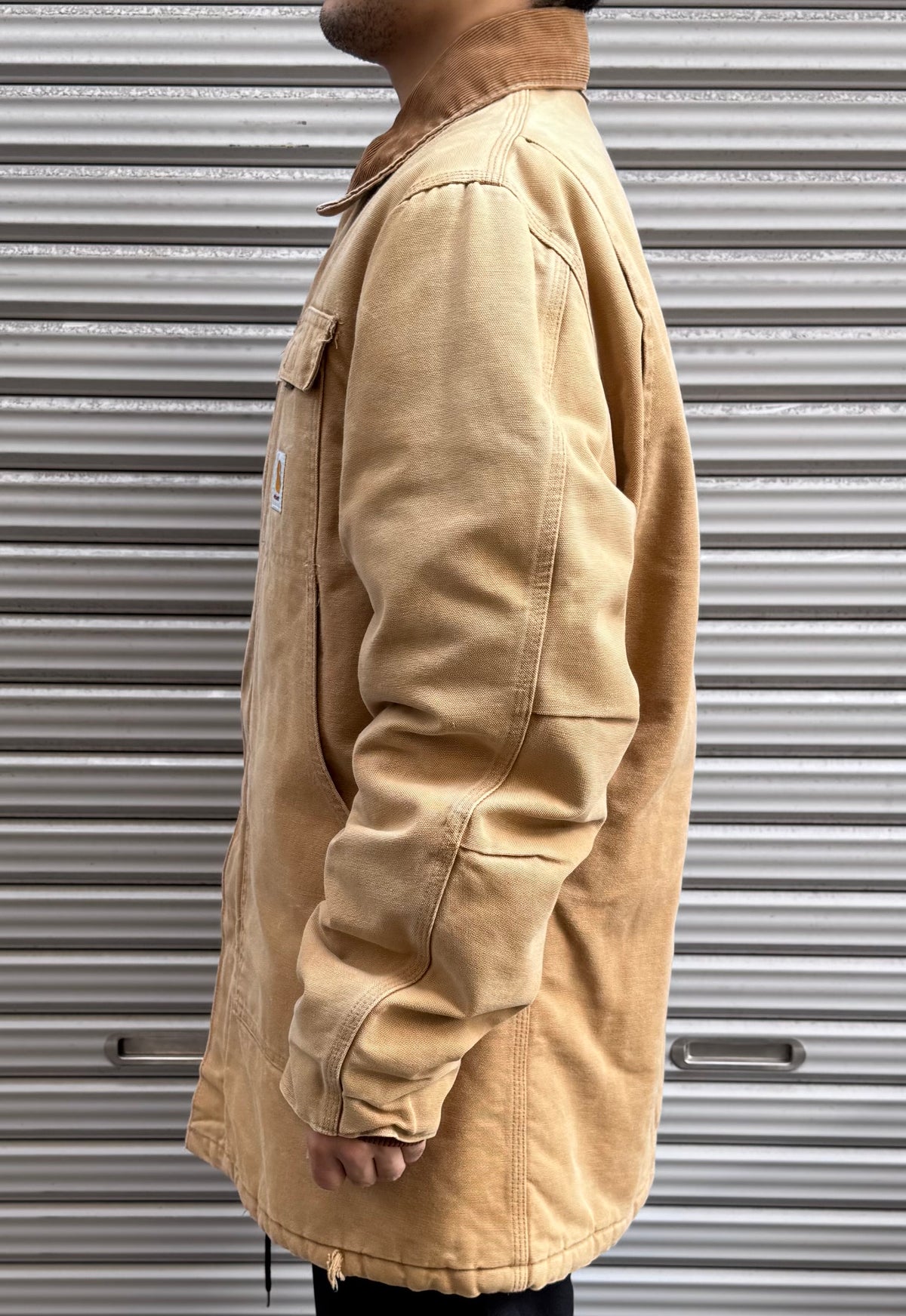 頑丈なダックキャンバス生地に中綿入りのキルティングライナーを備え、耐久性と保温性を兼ね備えた一着。