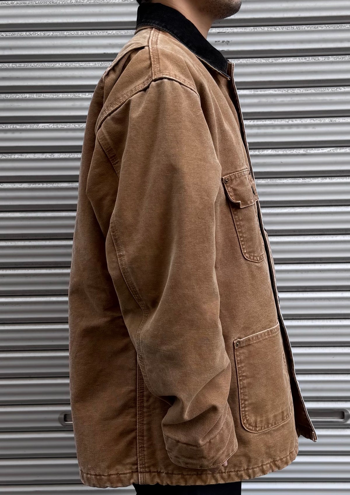 ワークウェアならではの無骨なシルエットに加え、ブラウンカラーがスタイルを引き締めてくれます。