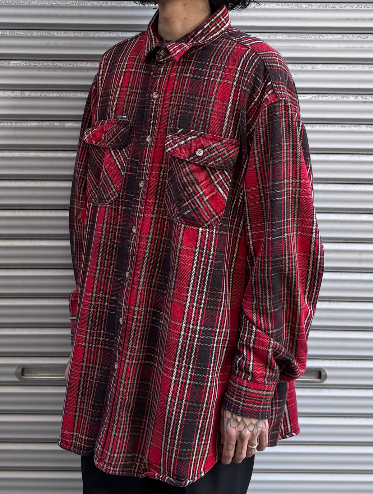 クラシックな赤×黒のタータンチェック柄が印象的な、Carharttのネルシャツ。