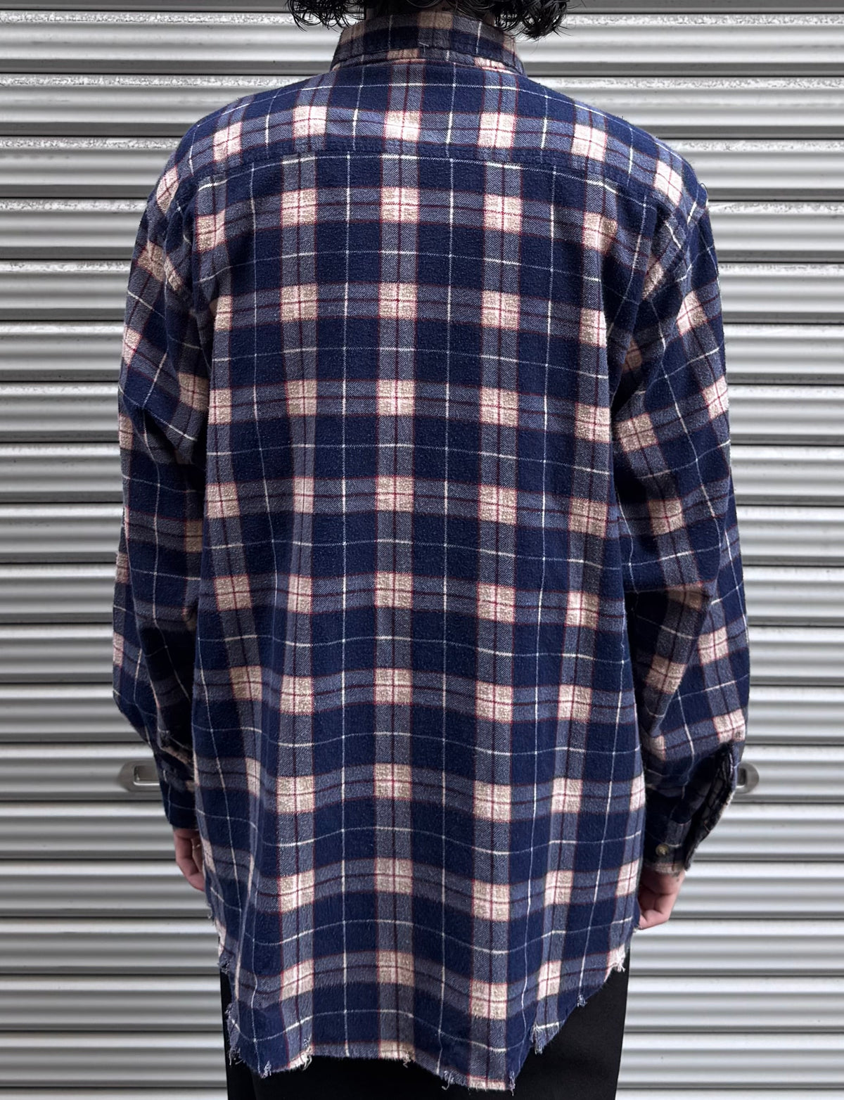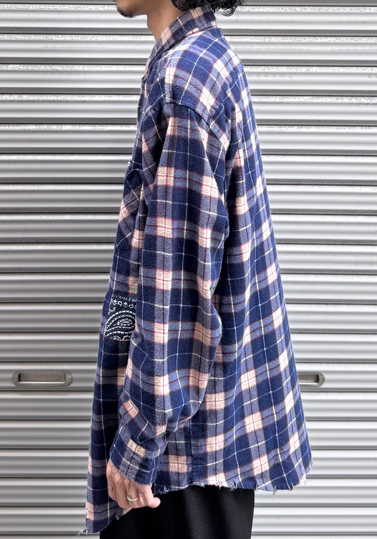 古着のネルシャツにバンダナを当て、リペアした一着。