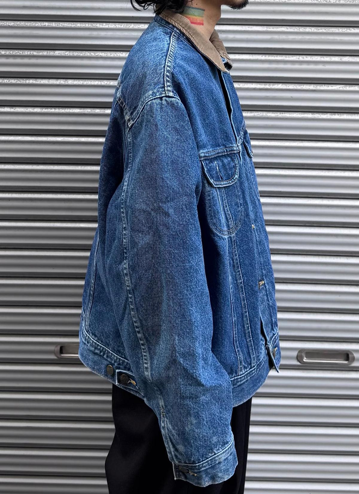 表地のタフなデニムは、着込むほどに風合いを増し、長年愛用するほど味わい深く変化します。