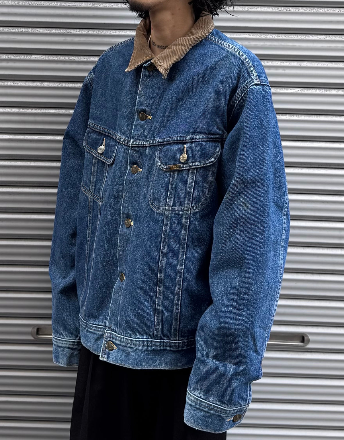 Lee特有のカーブを描くポケットステッチやショート丈のシルエットが、無骨ながらも洗練された印象を演出。