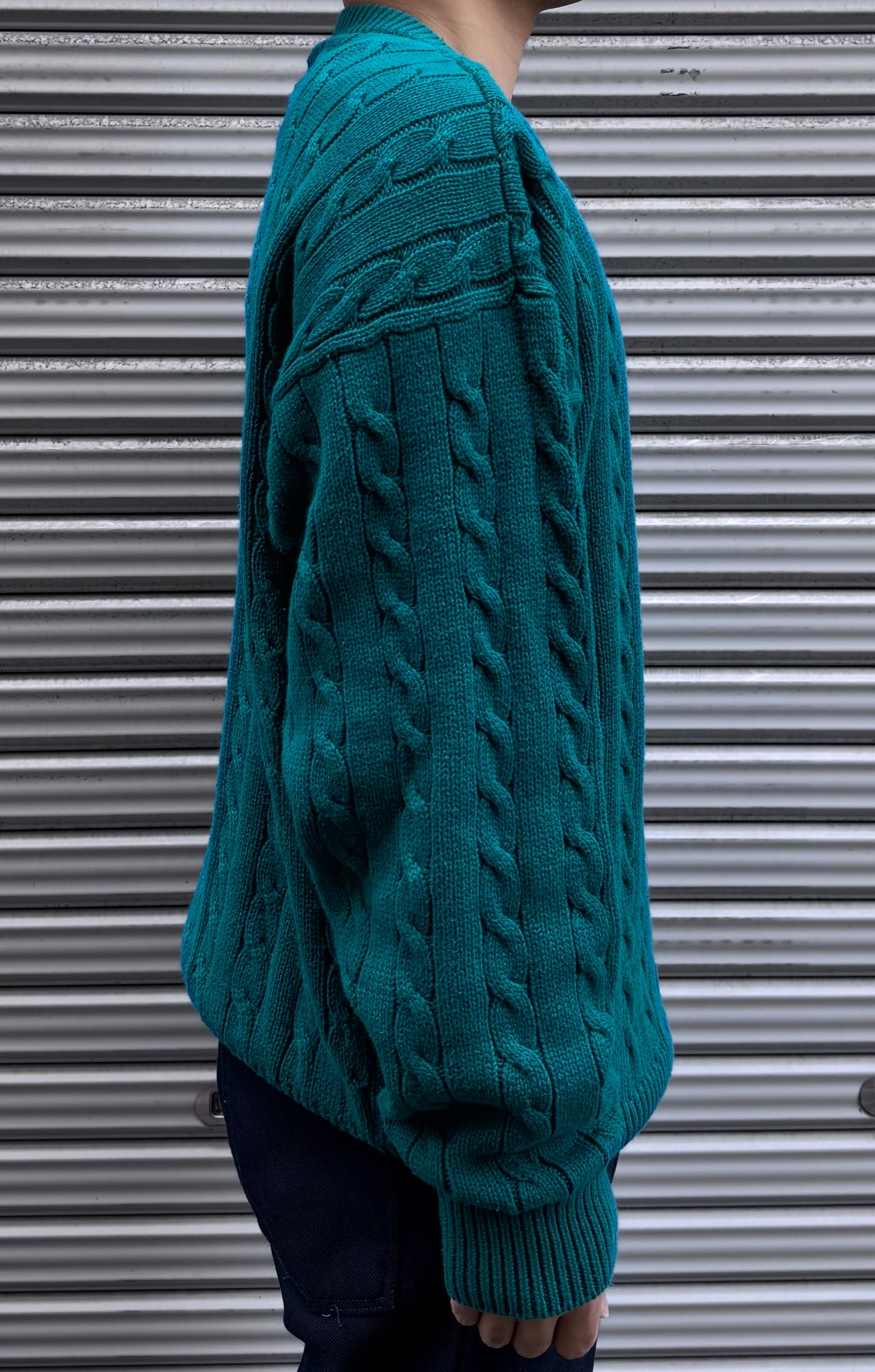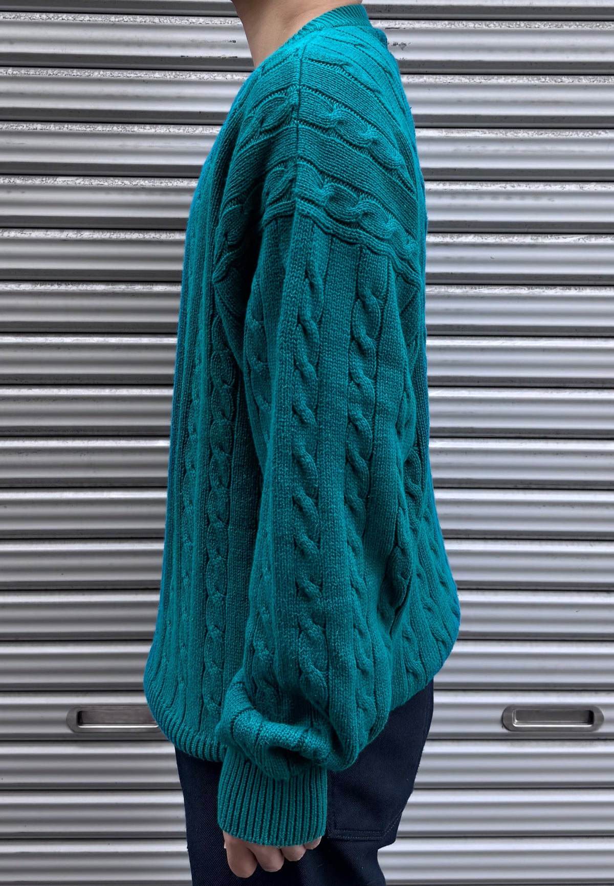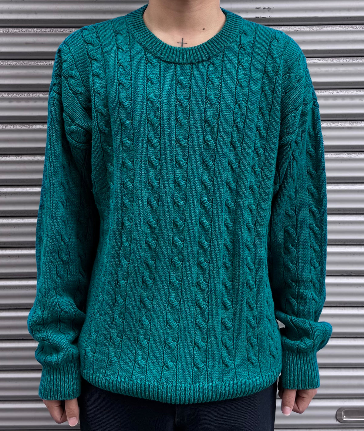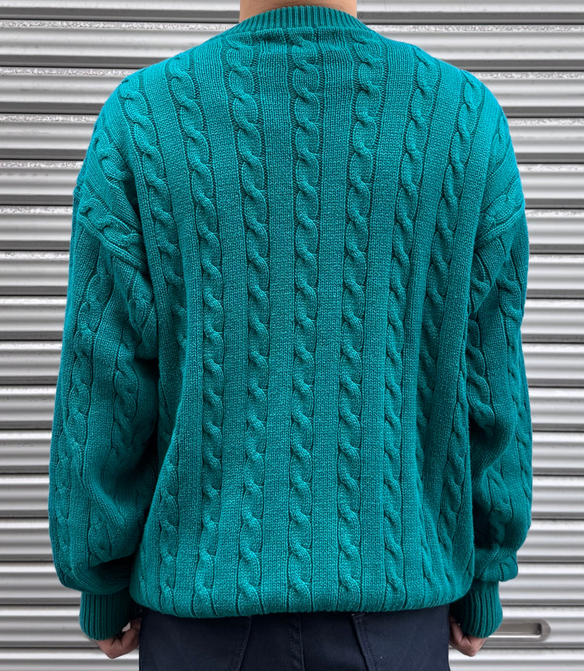 シンプルながら立体感のあるケーブル柄が上品な印象を与え、カジュアルにもトラッドにも合わせやすいデザイン。