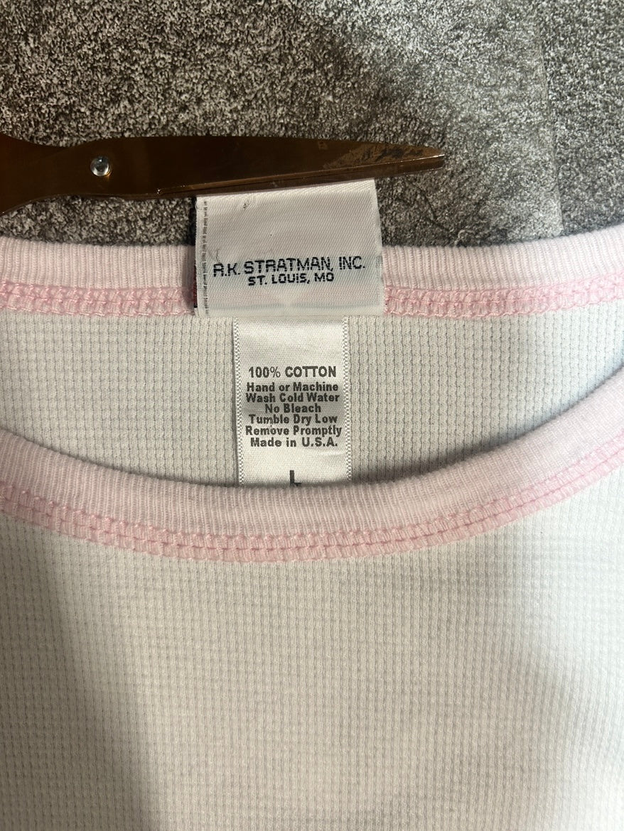 胸元・背面・袖にかけて施された淡いピンクのロゴデザインが特徴的な一着。