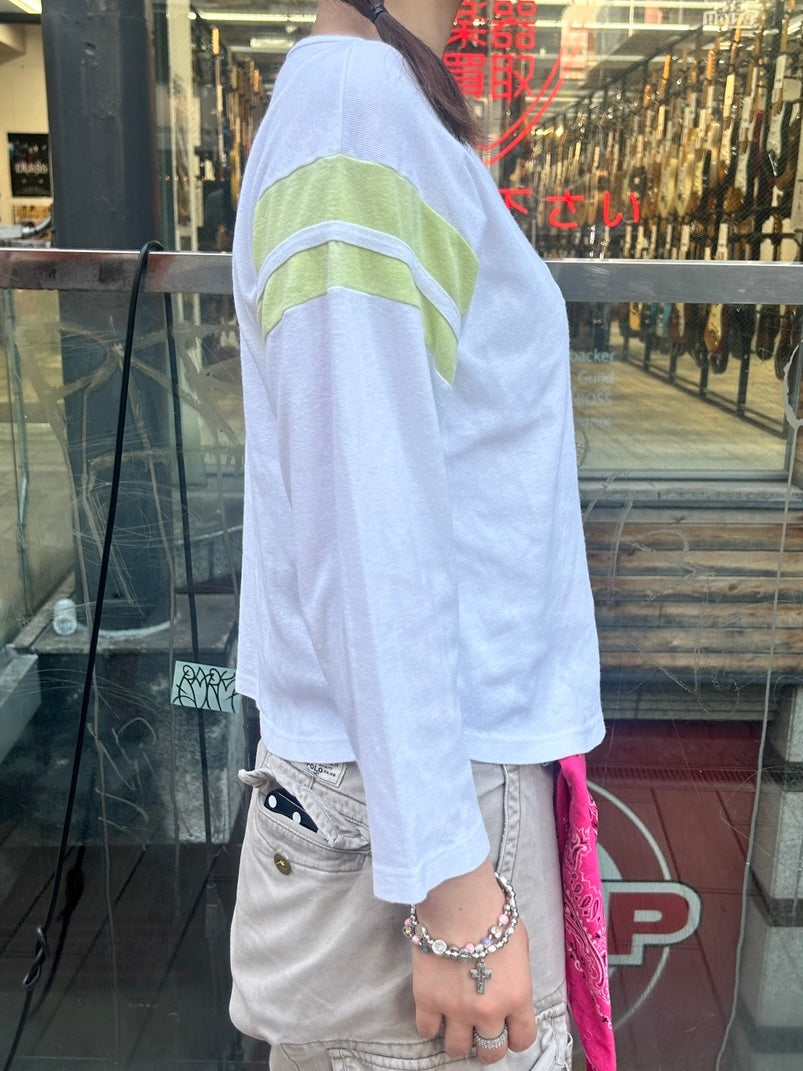 やや広めのネックラインとすっきりした丈感が、ラフすぎず女性らしい印象で、爽やかな配色は、Y2K・フェアリーグランジ・ストリートMIXなど幅広いスタイリングに。
