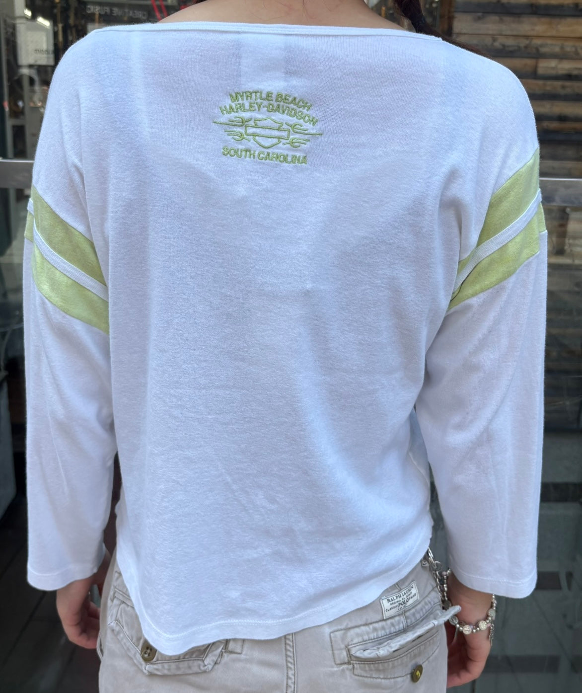 『Harley-Davidson』のレディース七分袖Tシャツ。