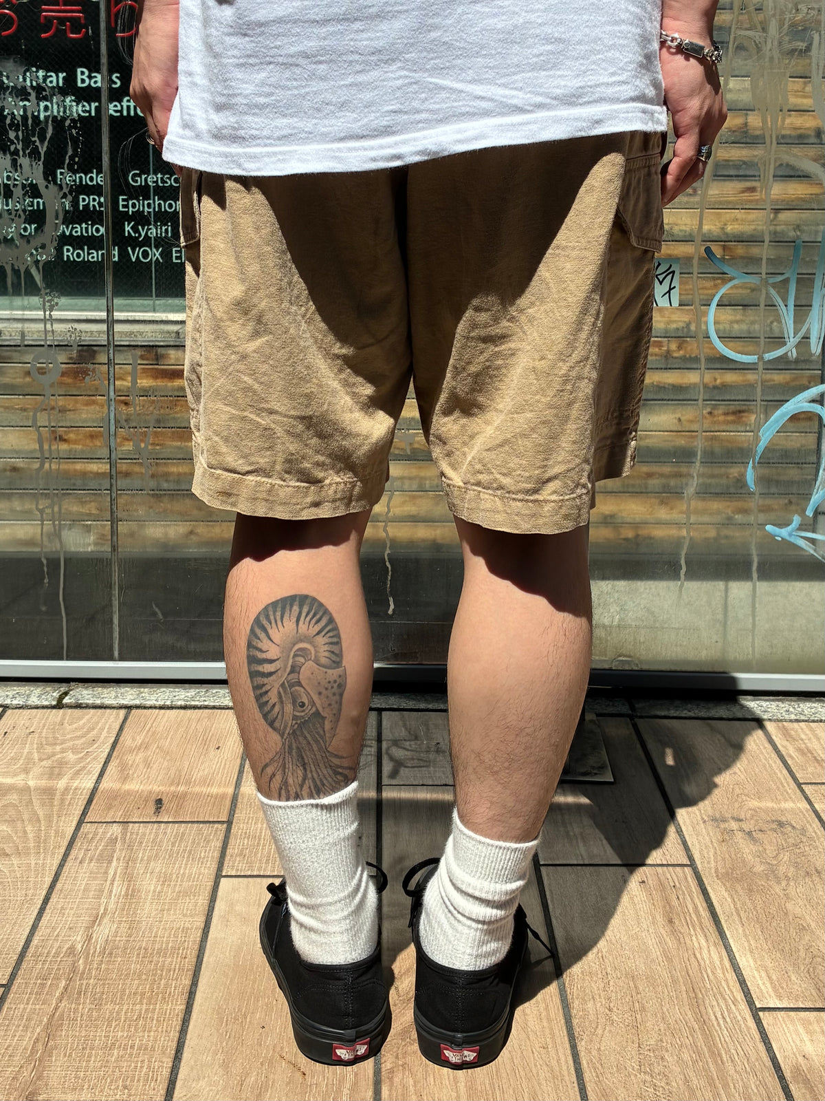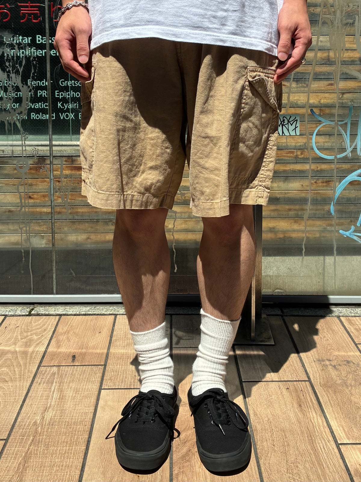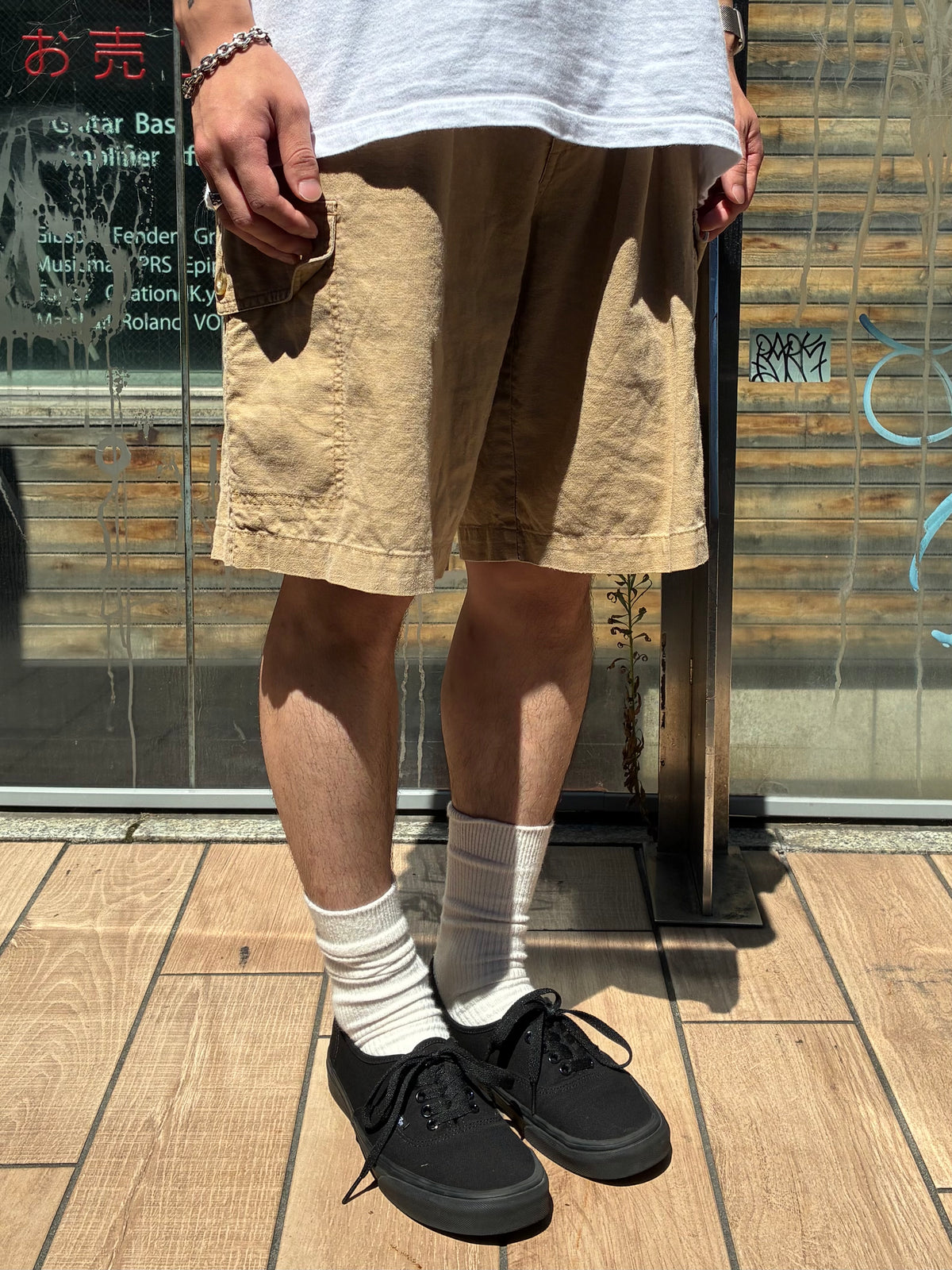 サイドのフラップポケットが程よい無骨さを演出し、Tシャツやタンクトップとの相性も抜群。