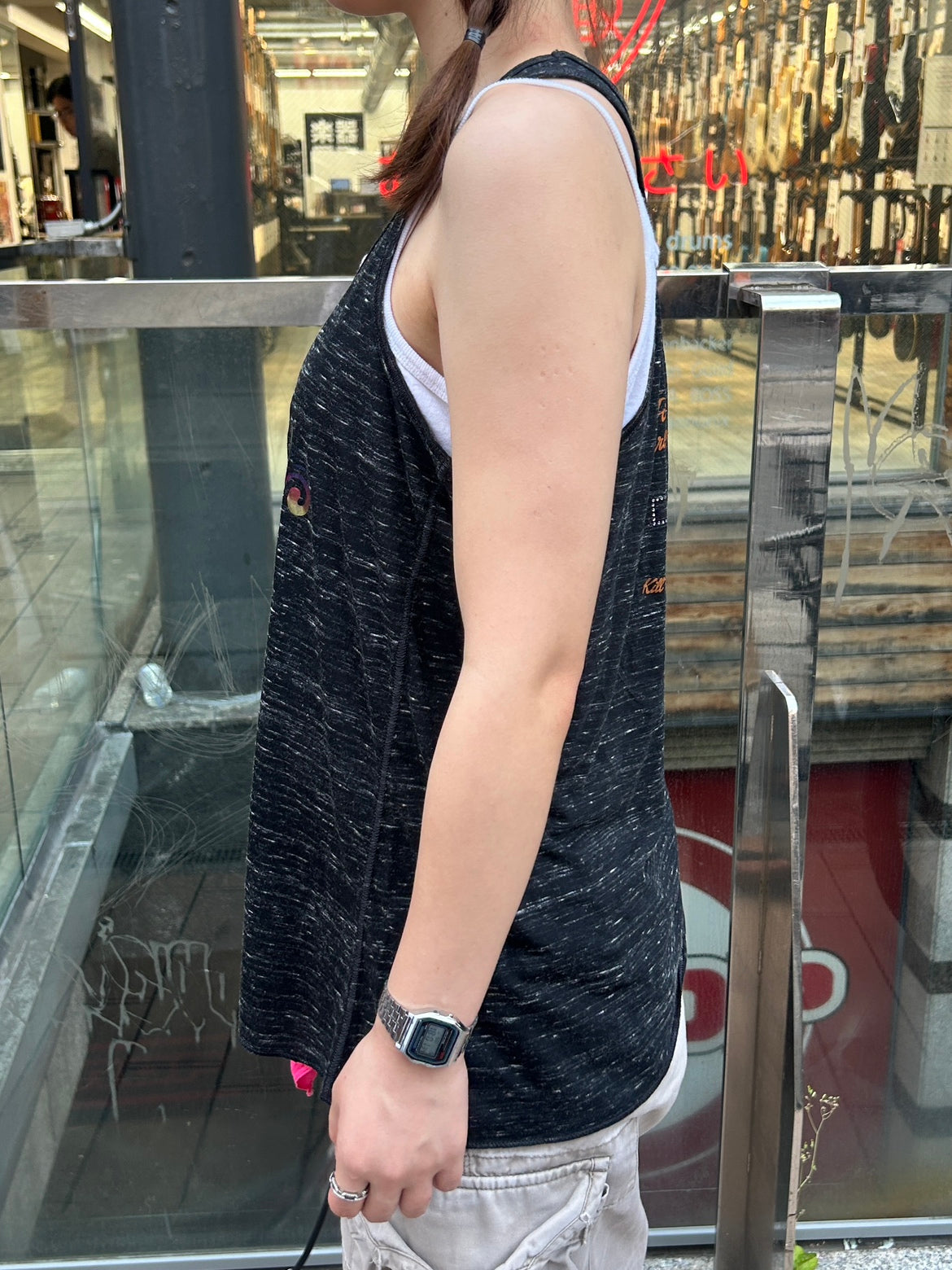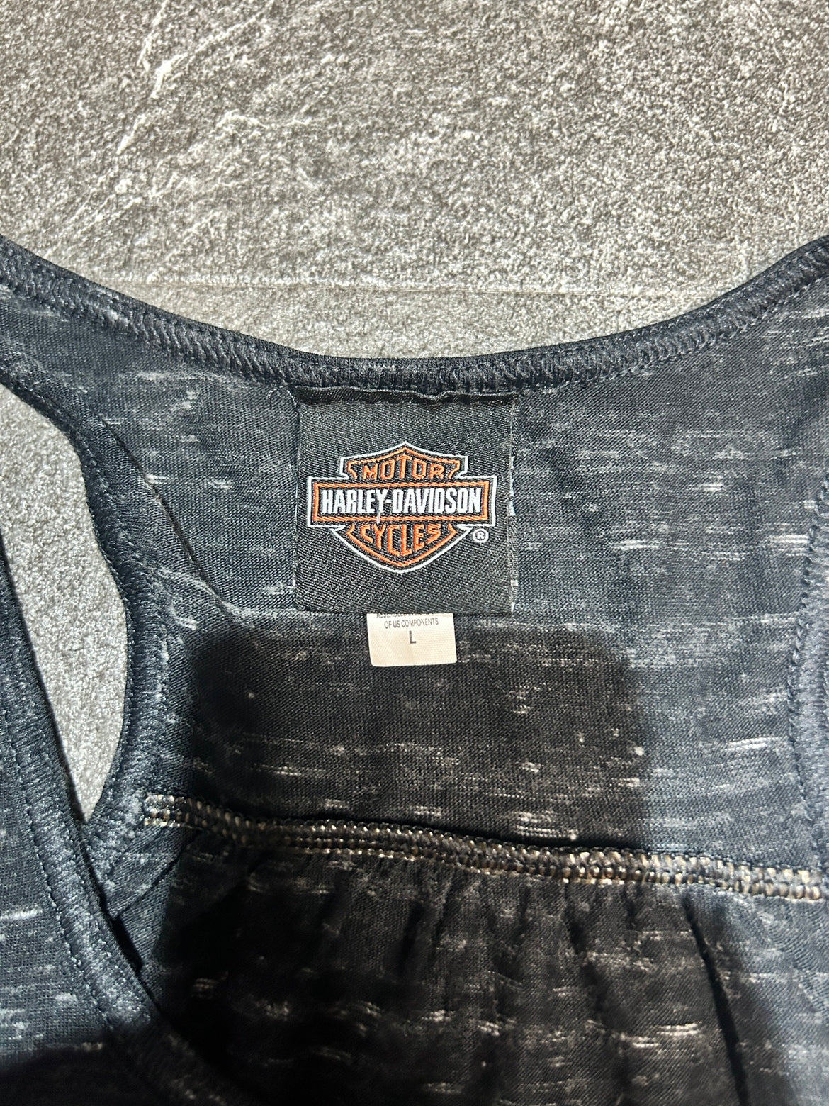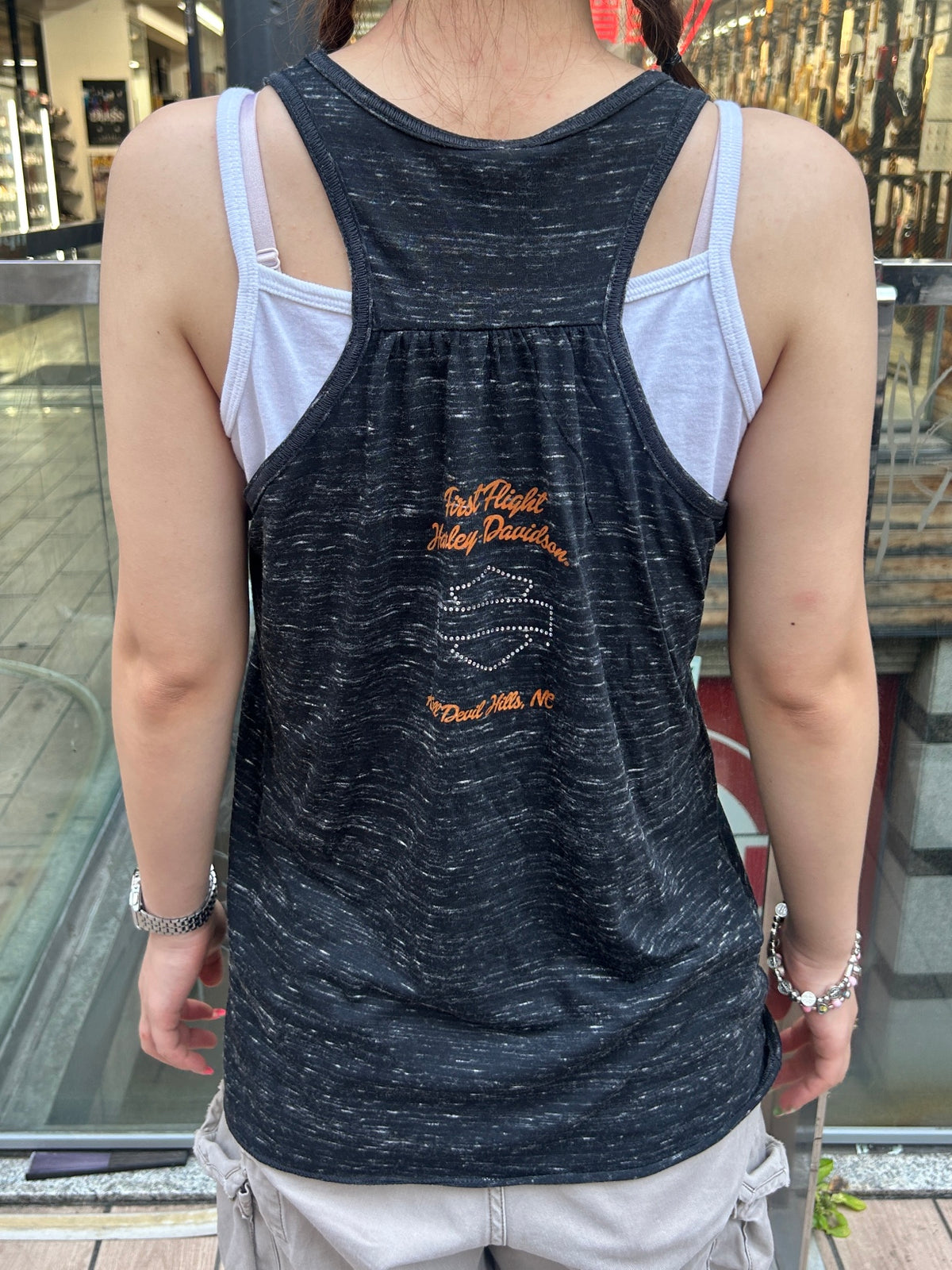 幻想的なホログラフィック調のロゴが印象的な、『Harley Davidson』のノースリーブタンクトップ。