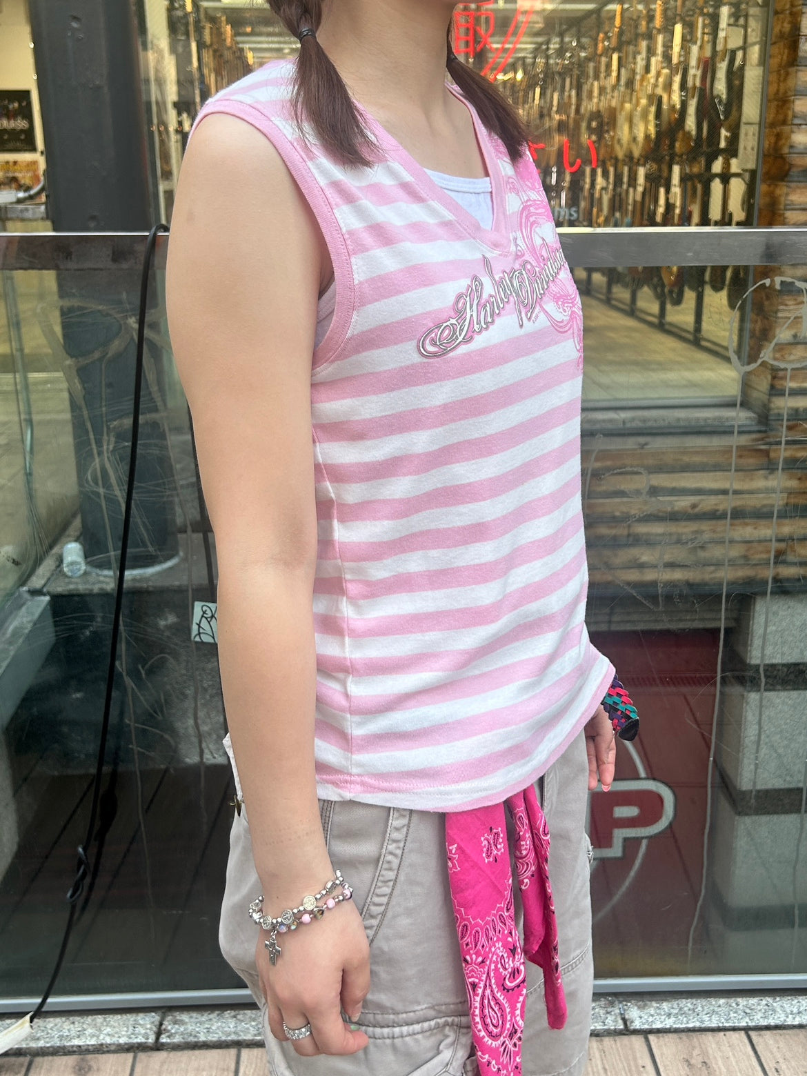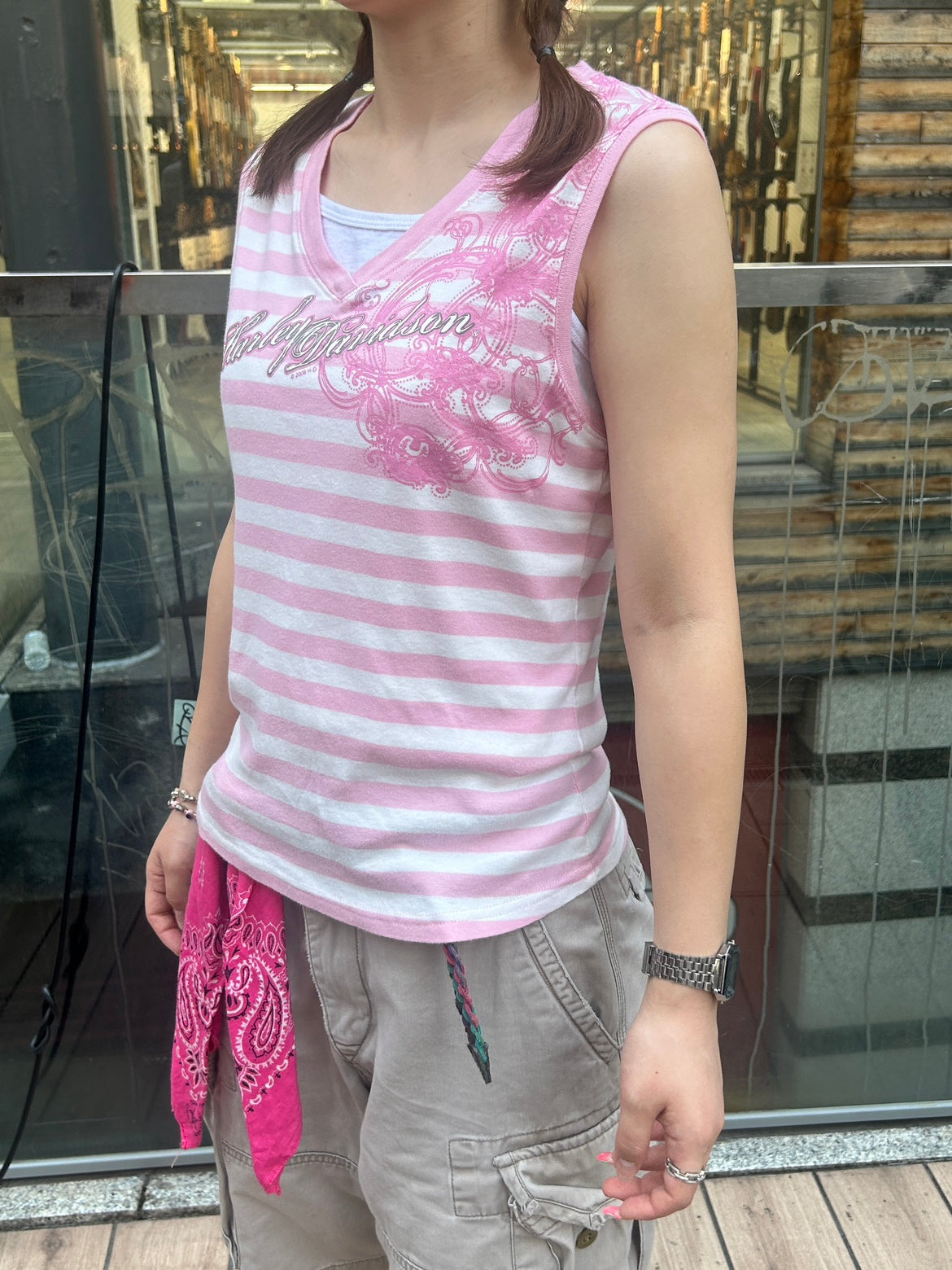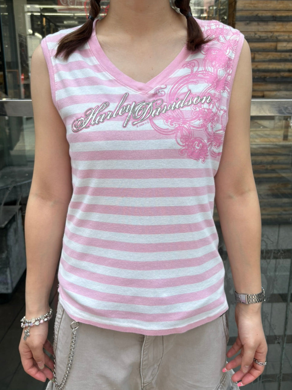2008年製の『Harley Davidson』ピンクボーダータンクトップ。