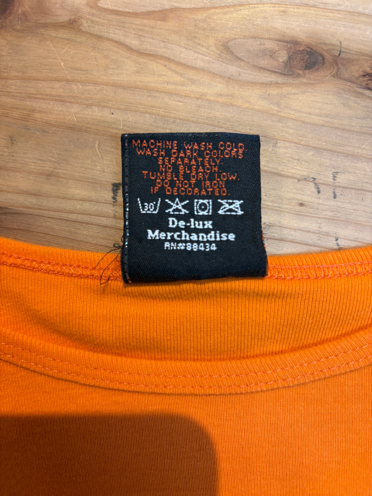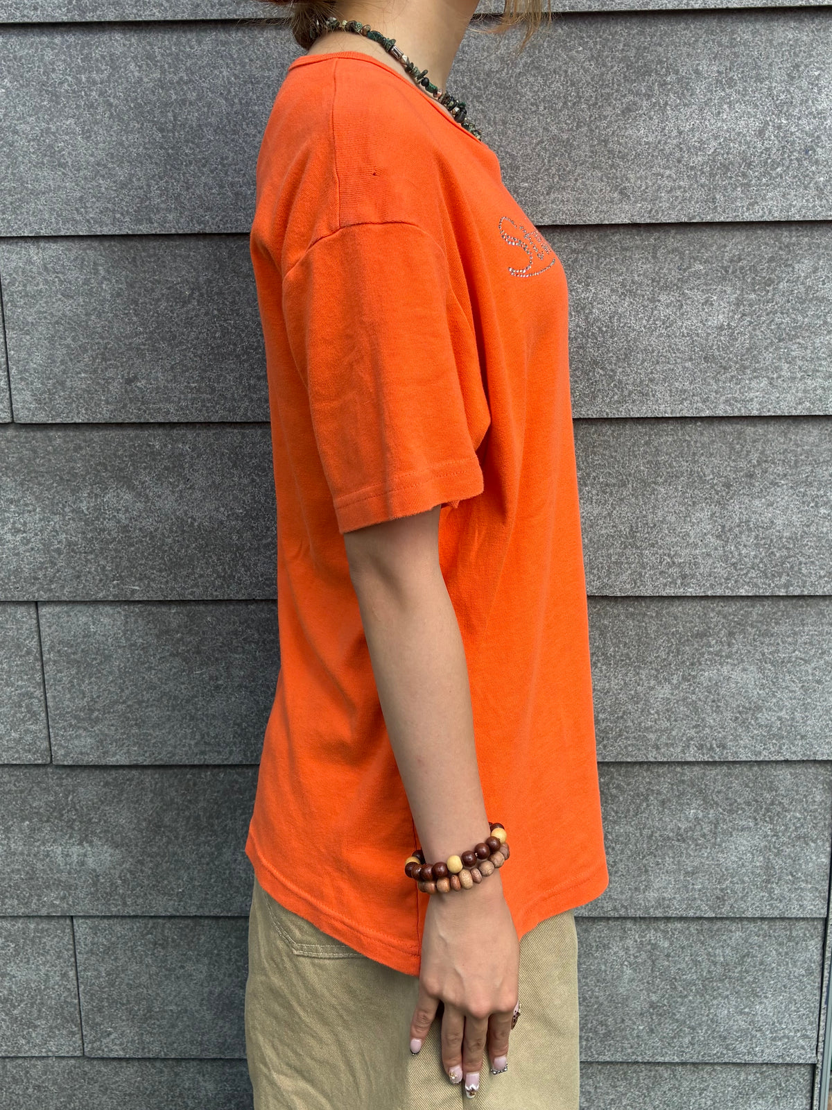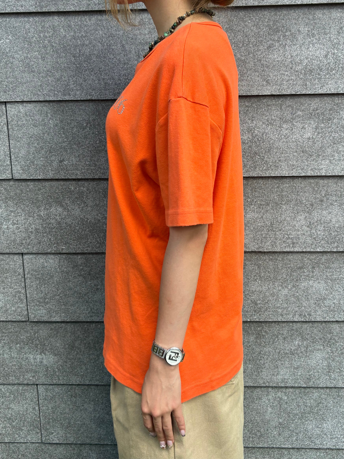 鮮やかなオレンジカラーとゆったりとしたシルエットで、ストリートにもフェスにも映える一着。