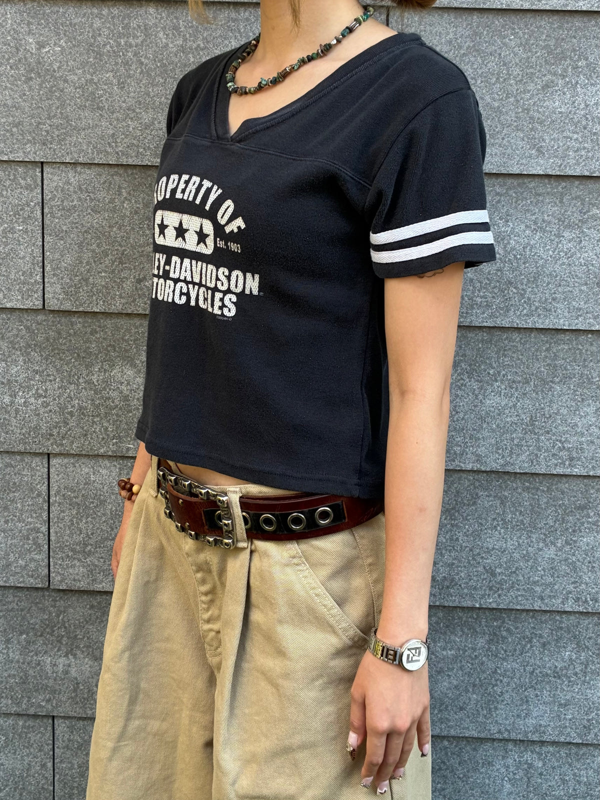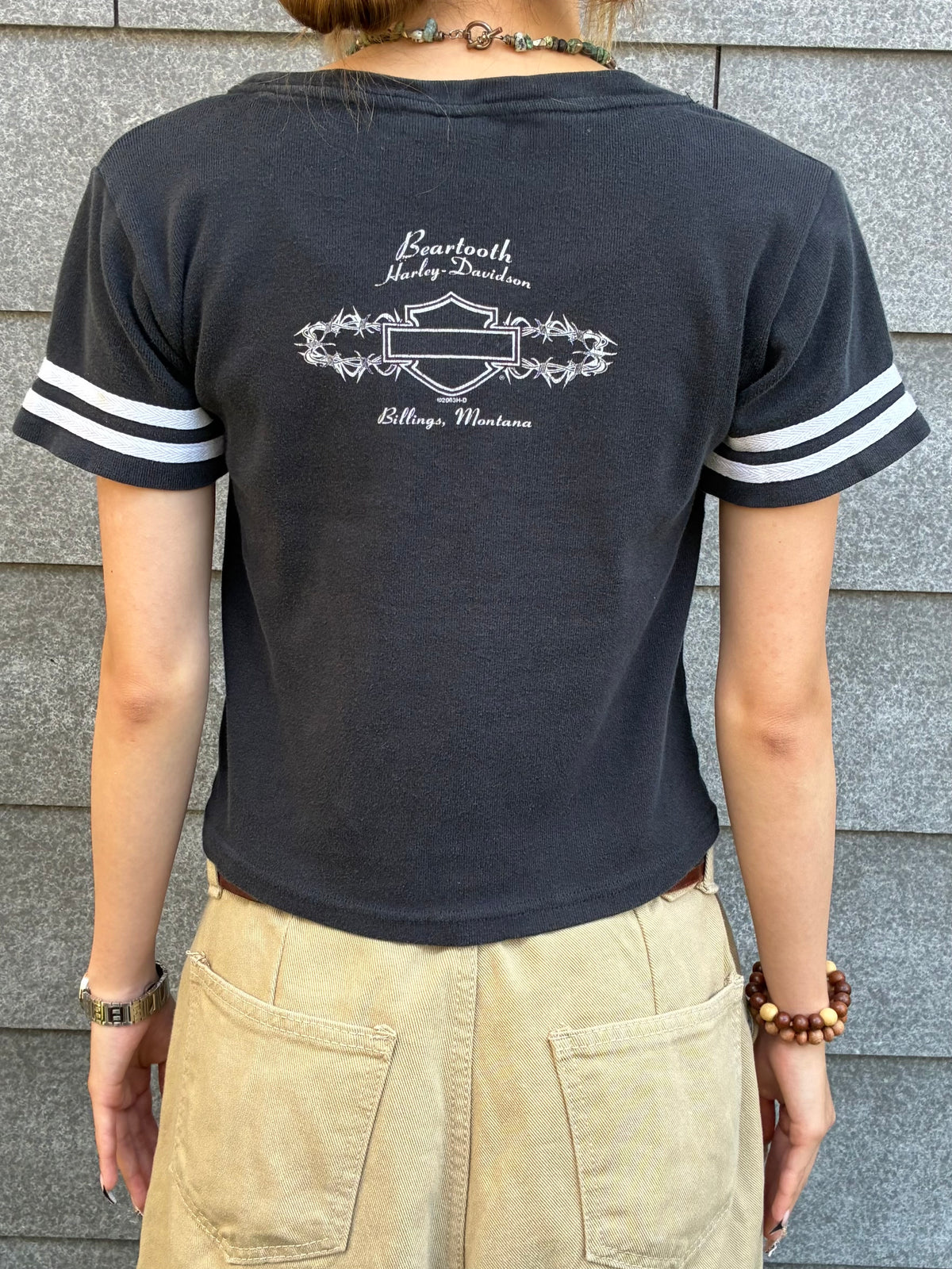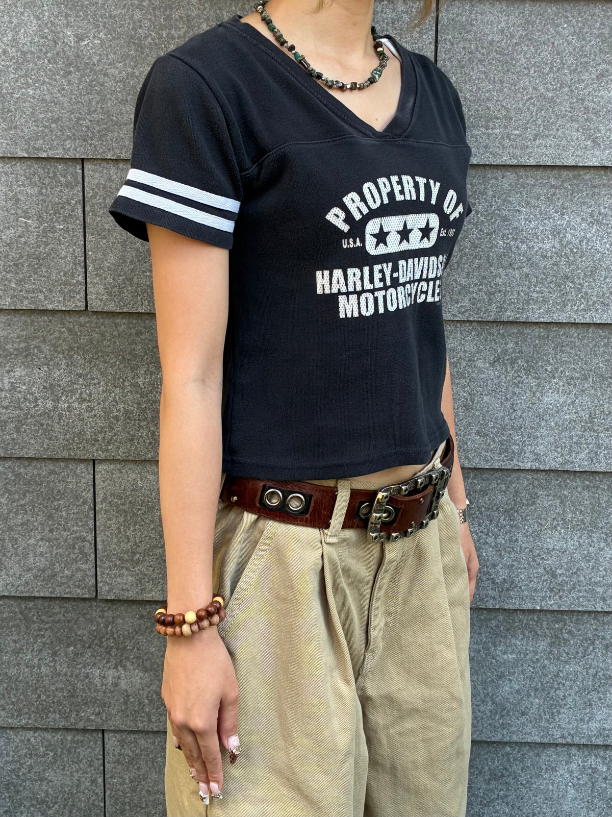2000年代初頭らしいスポーティーなデザインが可愛い、Harley-DavidsonのフットボールTシャツ。