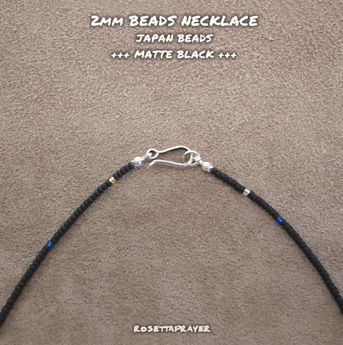 2mm BEADS NECKLACE- MAT BLACK 50cm / ROSETTAPRAYER