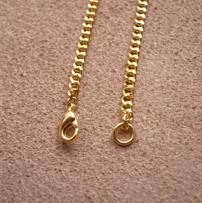 3.7mm幅の真鍮チェーンに18金メッキを施しました。