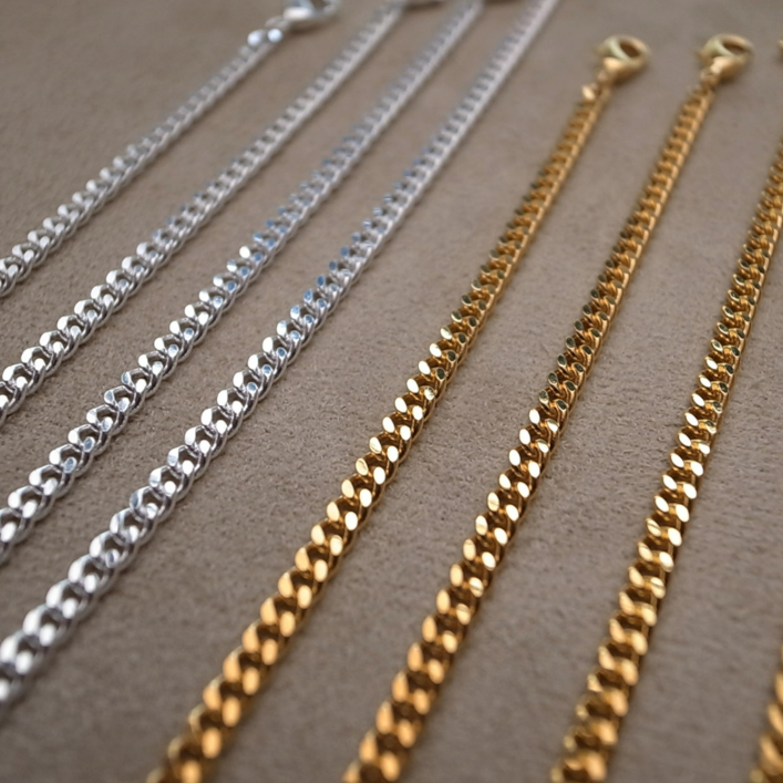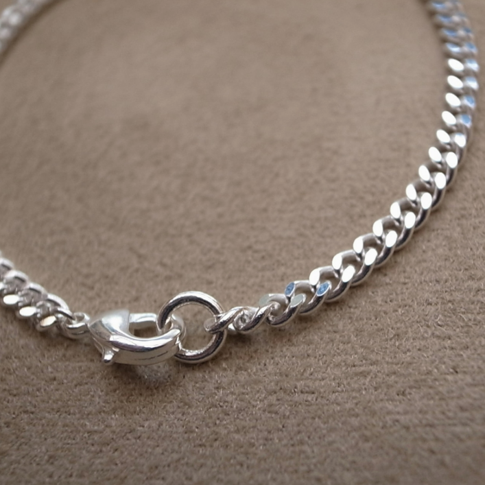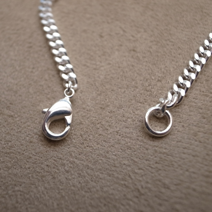 3.7mm幅の真鍮チェーンにシルバーメッキを施しました。
