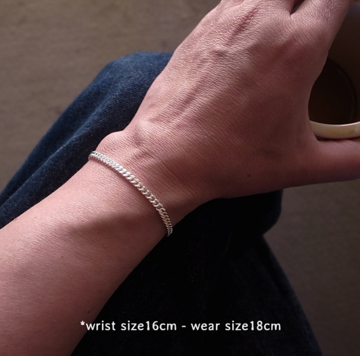 3.7mm FLAT LINK CHAIN BRACELET - SILVER 19cm / ROSETTAPRAYER