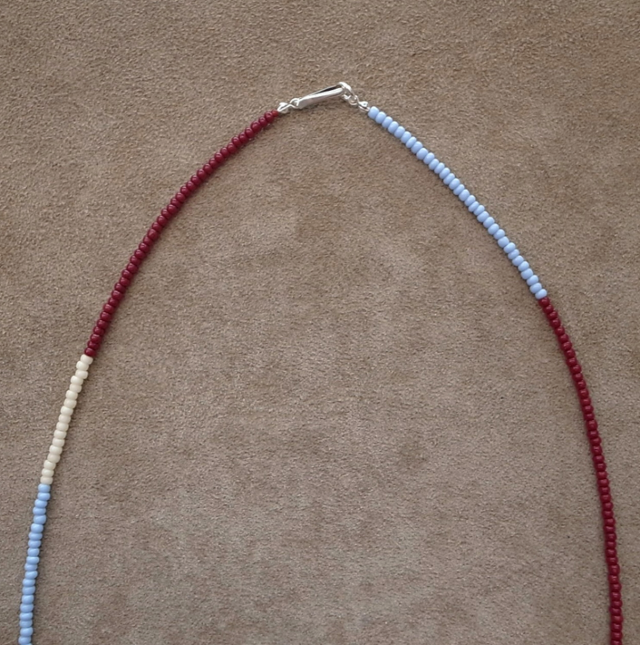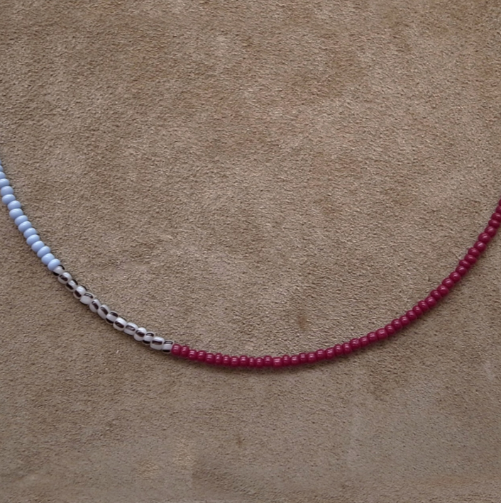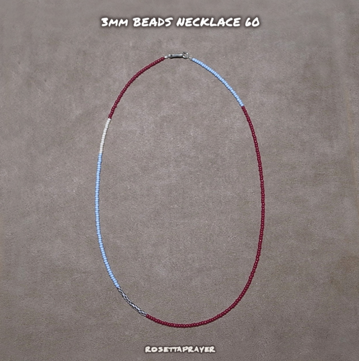 3mm BEADS NECKLACE DARK RED/ PALE BLUE 60cm / ROSETTAPRAYER