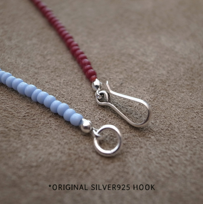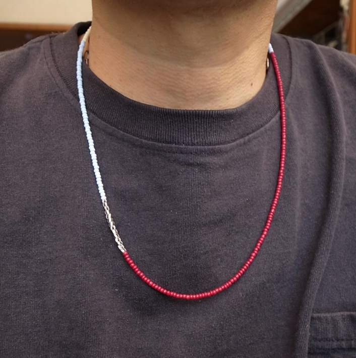 3mm ビーズ ネックレス 60- ダークレッド/ ペールブルー