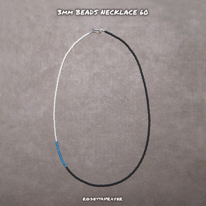 3mm BEADS NECKLACE M. BLACK/LT. BLUE 60cm / ROSETTAPRAYER