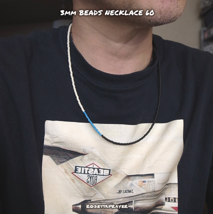 3mm BEADS NECKLACE 60- M. BLACK/LT. BLUE