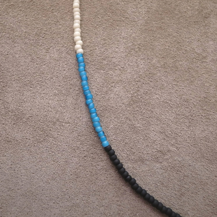 3mm ビーズ ネックレス 60- マットブラック/ライトブルー