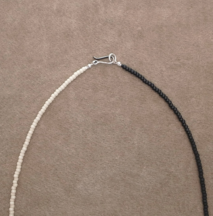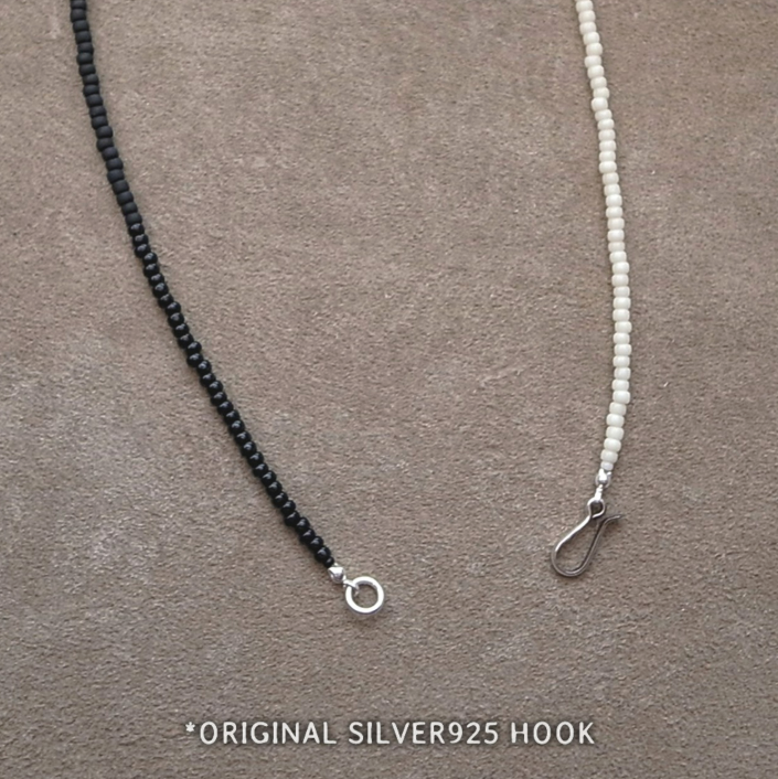 直径3mm(8/0)のビンテージ フレンチホワイトハーツビーズ、チェコ(PRECIOSA)シードビーズ、MIYUKI シードビーズ(日本製)の厳選ミックスビーズネックレスになります。