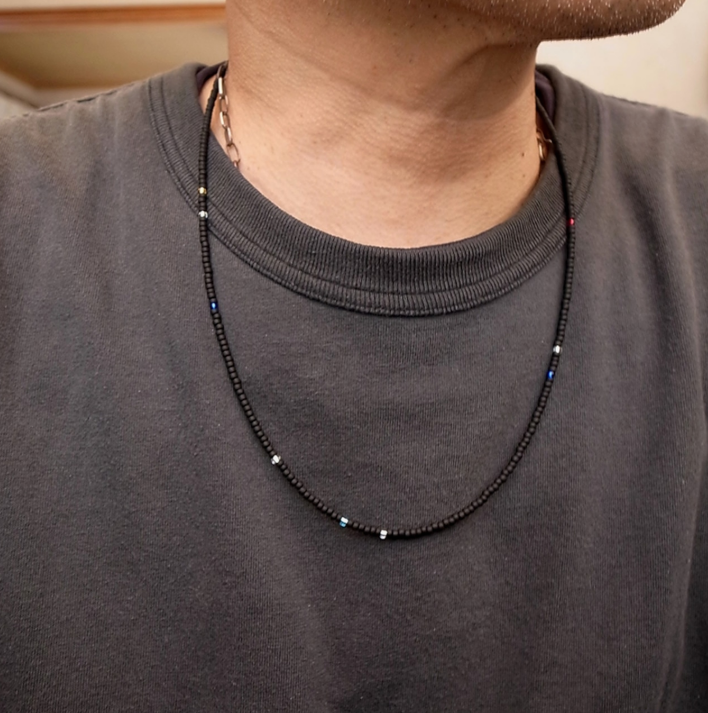 3mm ビーズ ネックレス 60- マットブラック