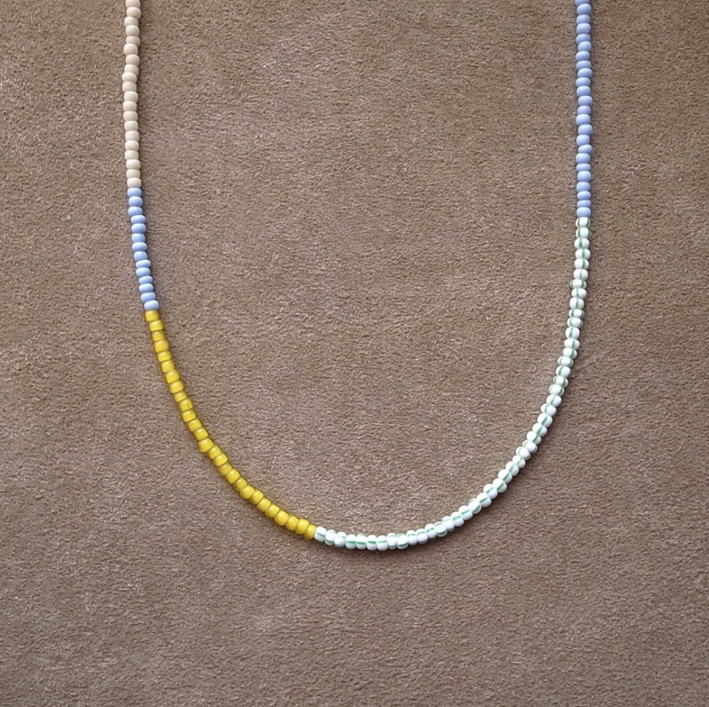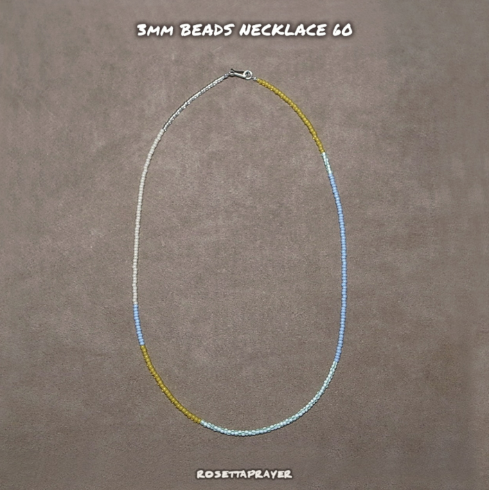 3mm BEADS NECKLACE YELLOW/PALE BLUE 60cm / ROSETTAPRAYER