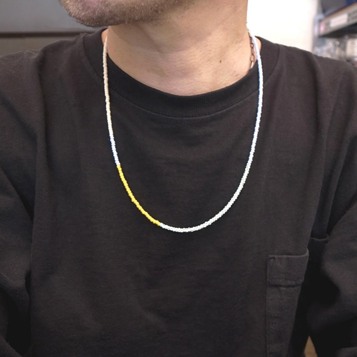 3mm ビーズ ネックレス 60- イエロー/ ペールブルー