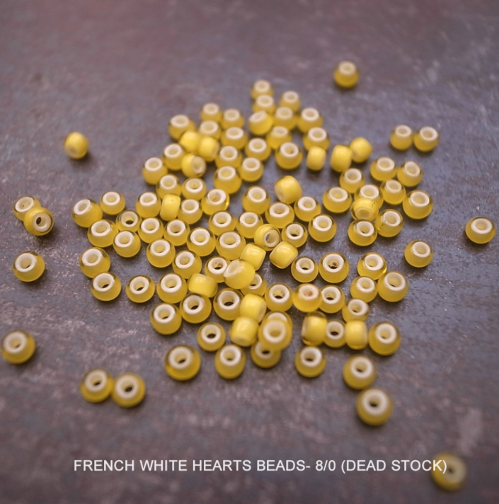 直径3mm(8/0)の80年代デッドストック フレンチホワイトハーツビーズ、チェコ(PRECIOSA)シードビーズ、MIYUKI シードビーズ(日本製)の厳選ミックスビーズネックレスになります。