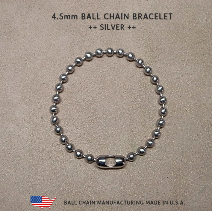 4.5mm BALL CHAIN BRACELET- SILVER- Made in U.S.A.