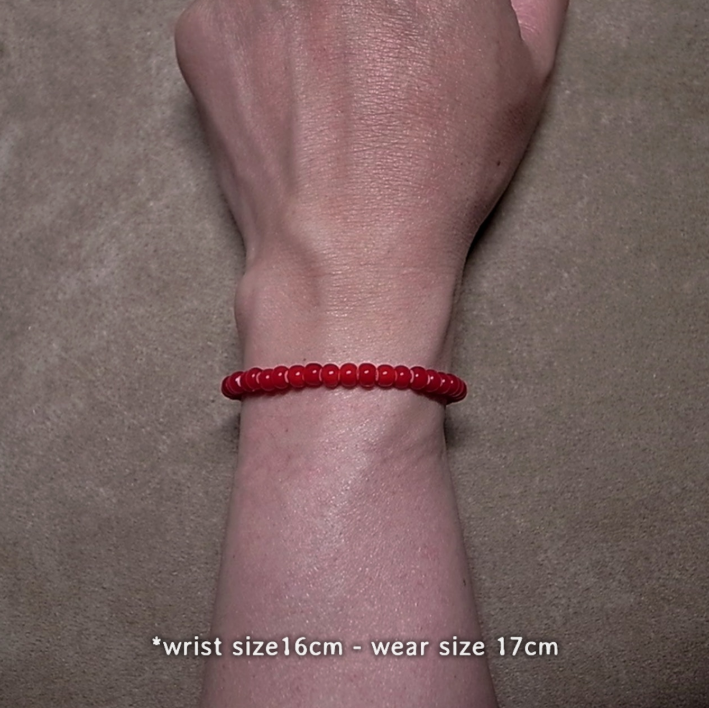 5mm WHITE HEARTS BEADS BRACELET- DARK RED 19cm / ROSETTAPRAYER