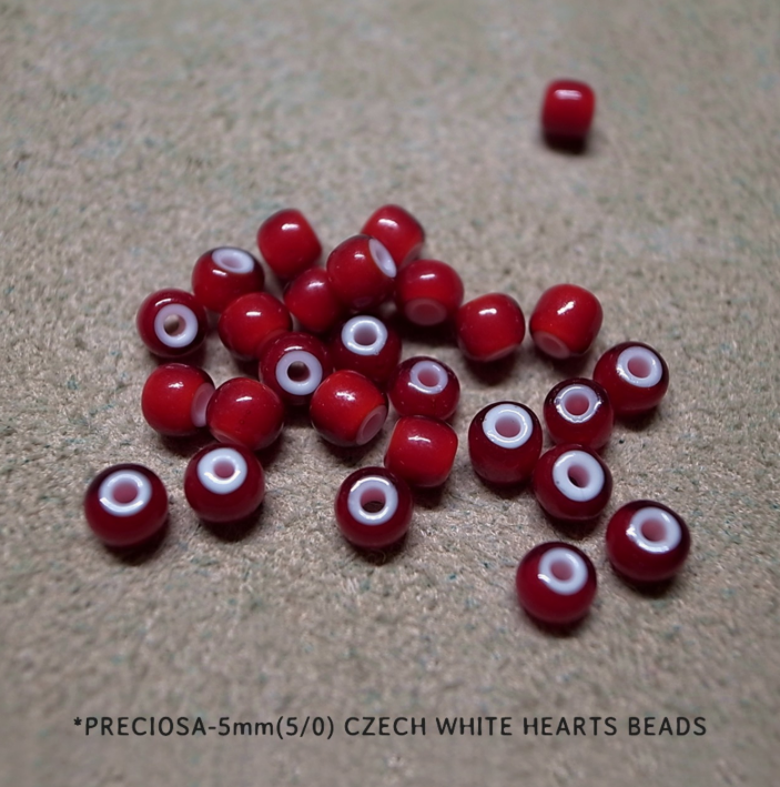 世界トップメーカーPRECIOSA社のチェコホワイトハーツビーズのダークレッドビーズを使用したブレスレットになります。
