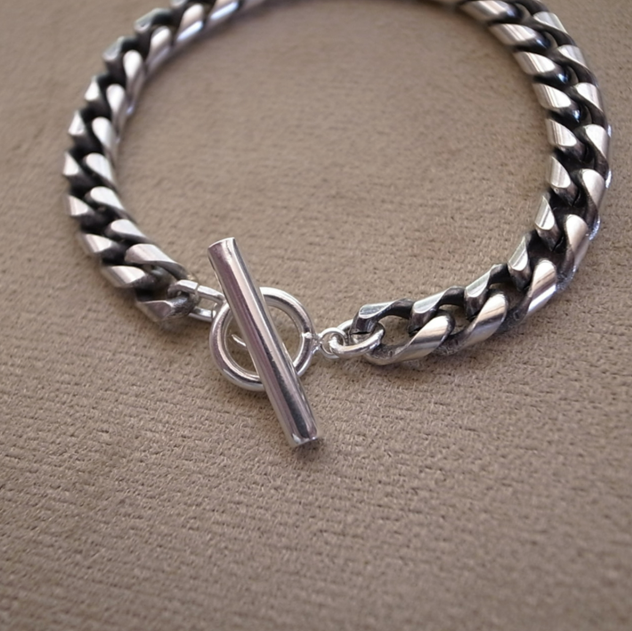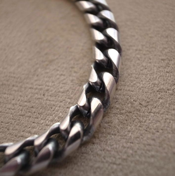 6.5mm BRASS FLAT LINK CHAIN BRACELET -SILVER